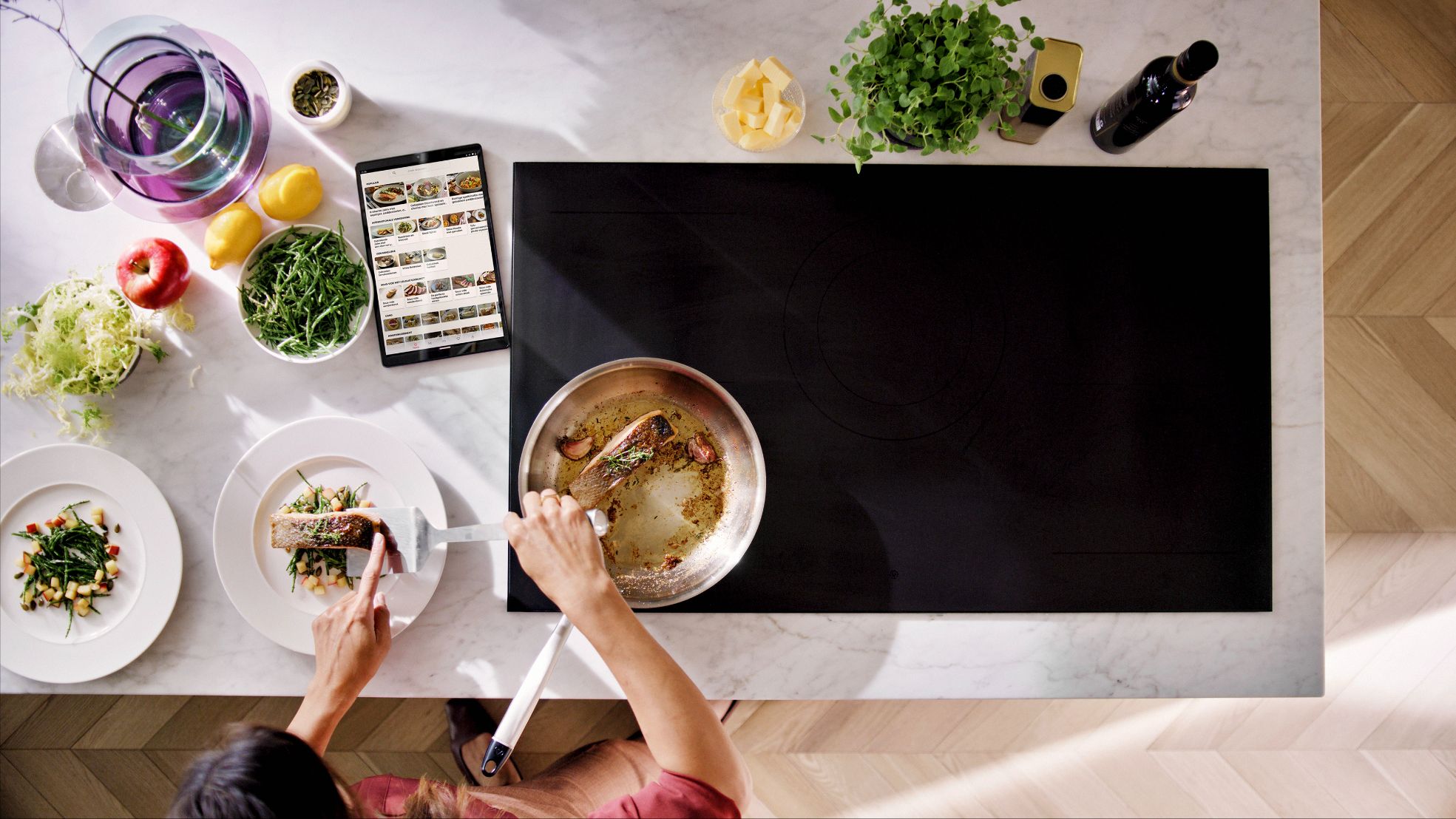 De ultieme temperatuurbeheersing van Celsius°Cooking™ wordt mogelijk gemaakt door de speciale slimme Celsius°Cooking™-accessoires: de Chef’s Pot-hapjespan, bakpan en kernthermometer zijn via bluetooth verbonden met de inductiekookplaat. De temperatuur wordt voortdurend gemeten in het midden van de panbodem of in de kern van het gerecht, en continu behouden op de ingestelde temperatuur. Of je nu even de tafel dekt, nog wat groenten snijdt of met de kinderen bezig bent, je gerecht kookt niet meer over en brandt niet aan. Van een snelle maaltijd tot een uitgebreid diner, geen gerecht kan meer mislukken.