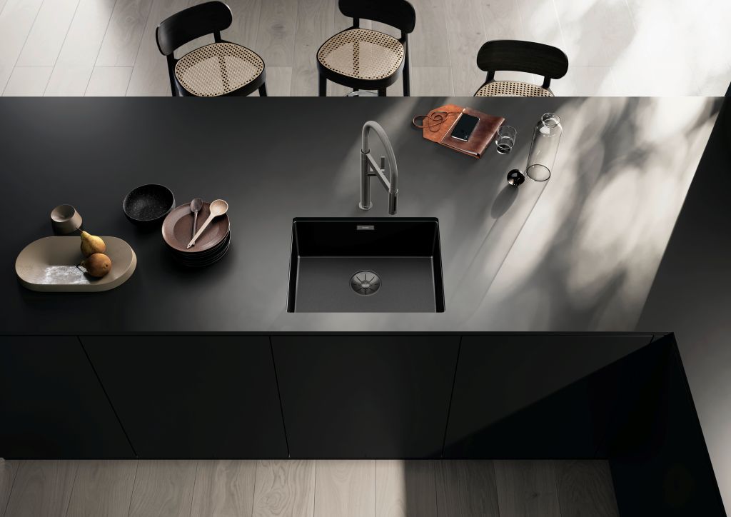 Het uitmuntende design van de BLANCO CLARON is verkrijgbaar in Dark Steel