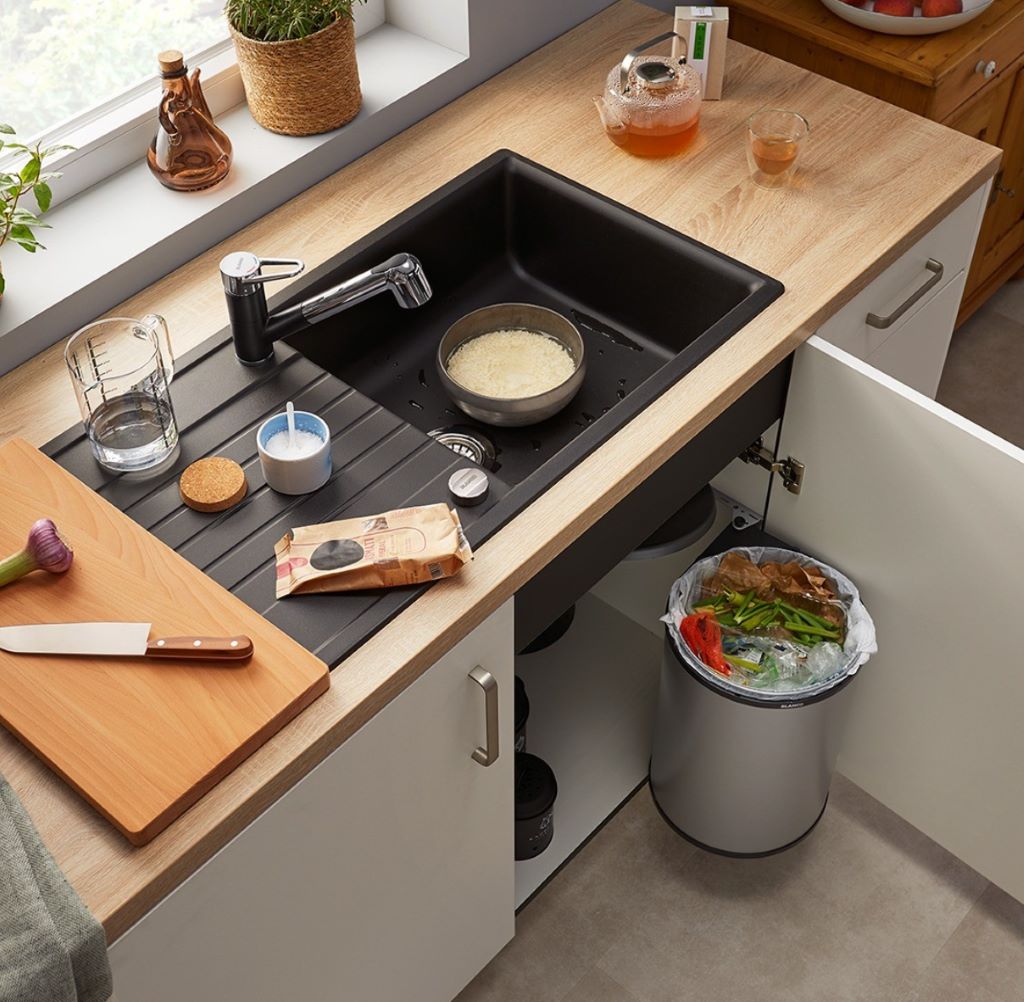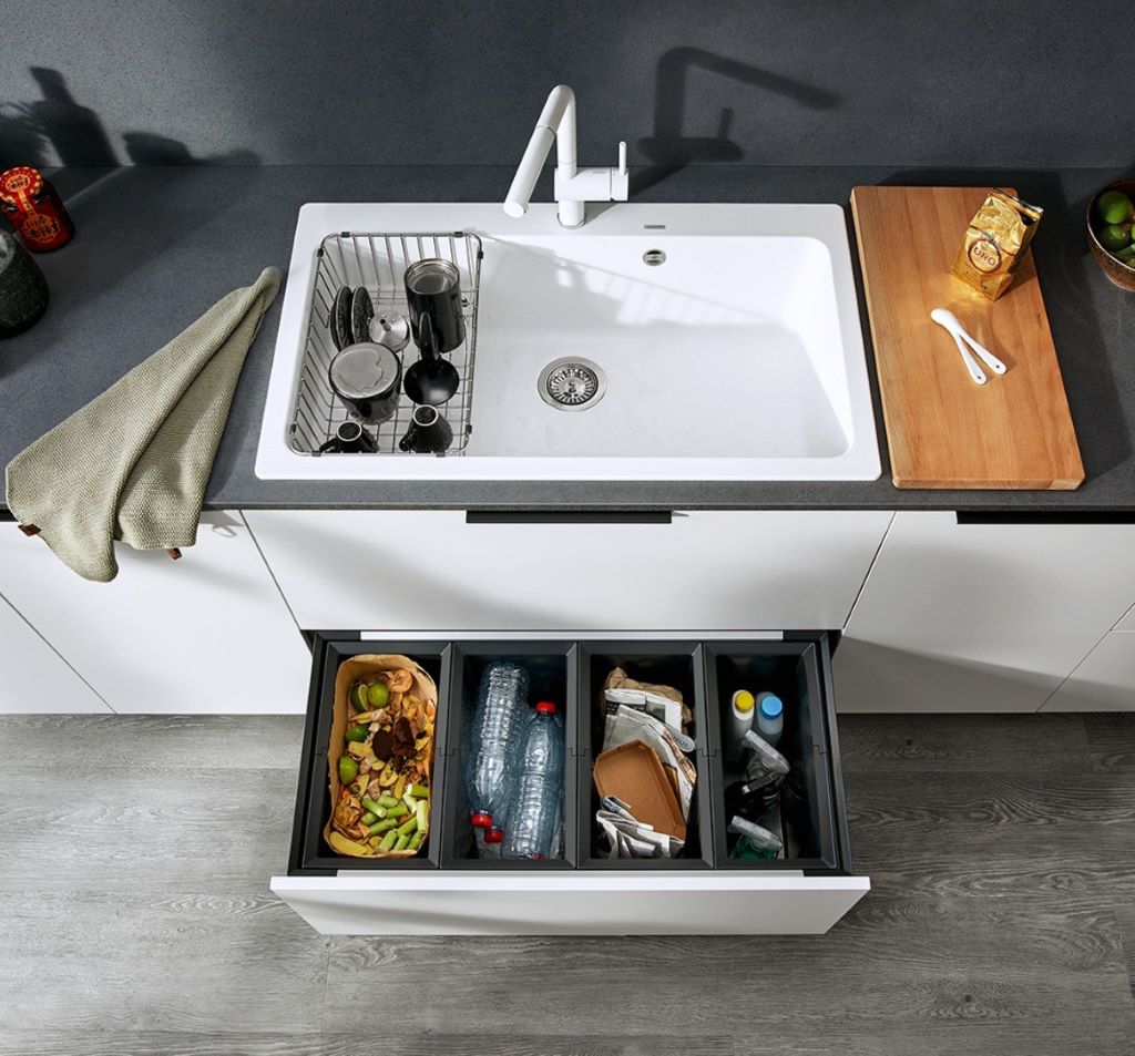 Spoelbak, kraan, afvalsystemen en accessoires perfect op elkaar afgestemd.