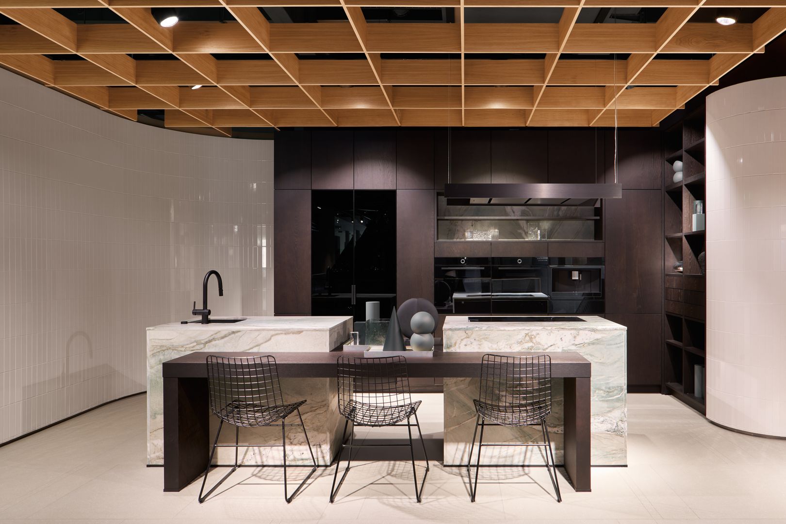 Met als rode draad de termen ‘vakwerk’ en ‘elegantie’ fungeert het nieuwe interieurontwerp als een Store Concept dat mensen verbindt en inspireert. Het vakwerk – als verwijzing naar de Beierse herkomst van het premiummerk – vormt tevens een structureel raster. Het zorgt voor een logische indeling van de Store met duidelijke lijnen – gebaseerd op het opvallende 125-mm-raster van een next125-keuken.
