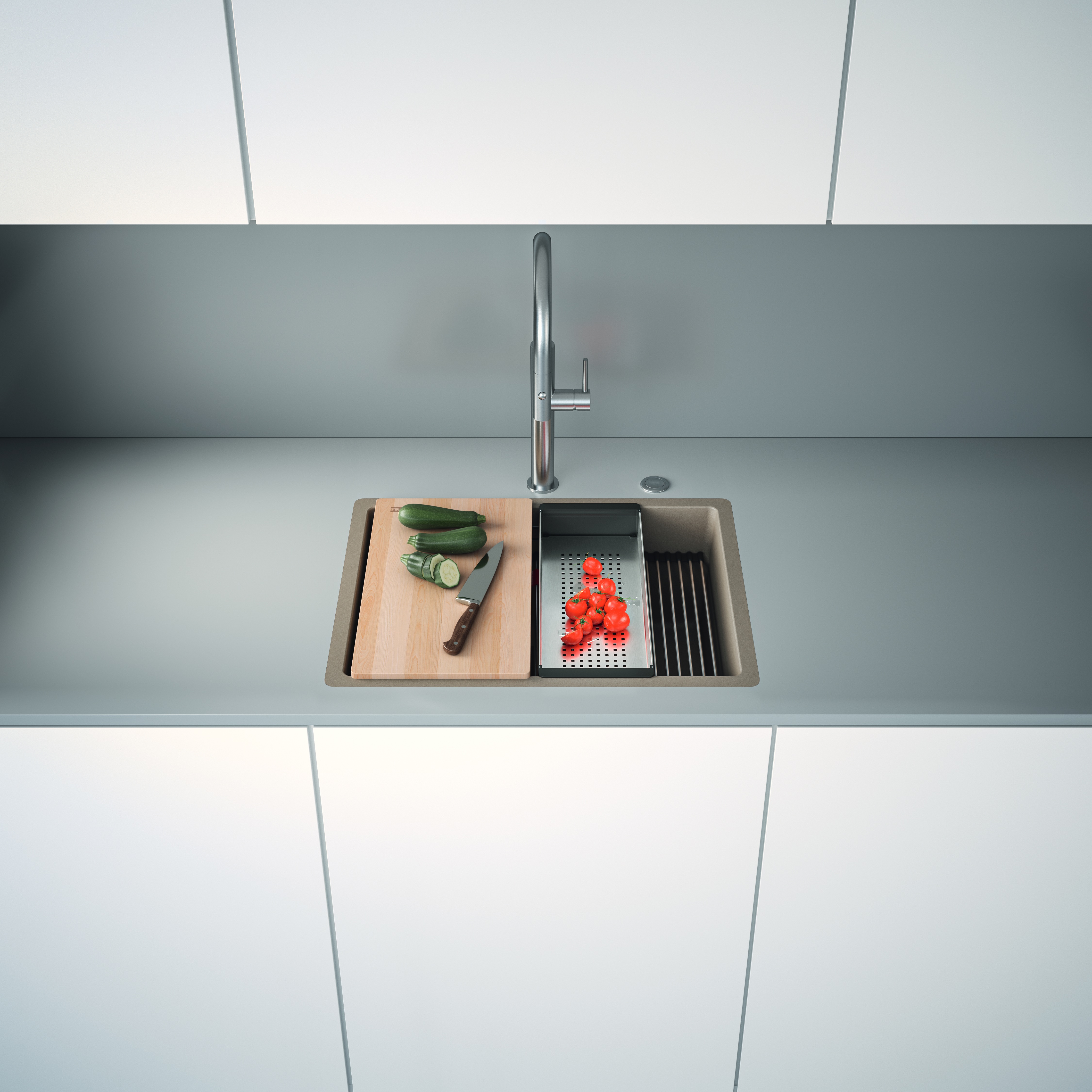 Daarnaast groeit de vraag naar multifunctionele oplossingen die werkruimte efficiënter maken. Producten zoals de Box Center-spoelbak met geïntegreerde accessoires en het All-In systeem creëren slimme werkzones.