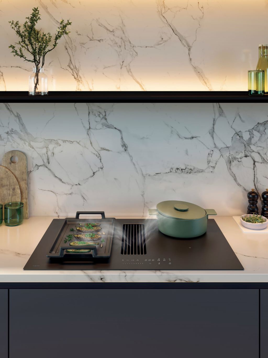 Laat je inspireren door stijlvolle afzuigkappen, slimme inductiekookplaten en designverlichting