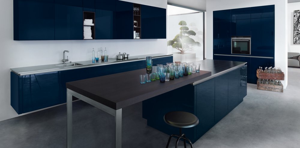 De fronten zijn voorzien van geïntegreerde, roestvrijstalen grepen wat juist weer voor een strakke look zorgt. De weggewerkte inbouwapparatuur en de afwisseling met matte laktinten in lichte en donkere kleuren dragen hier ook aan bij.