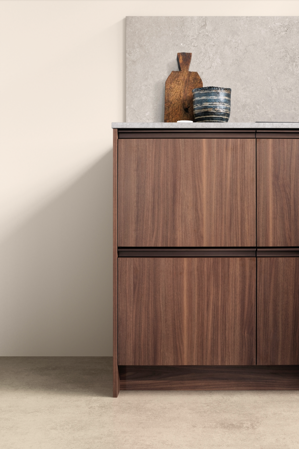 Compose is een keukendesign met het meest uitgebreide kleurenpalet ooit binnen één ontwerp bij Kvik. Door acht frontkleuren, waaronder de nieuwe nordic light, geïnspireerd op natuurlijk eiken, en nordic glow, een warme walnootbruine tint, te combineren met acht metalen grepen, ontstaan 64 unieke kleurencombinaties. De geïntegreerde metalen greep is exclusief voor deze serie ontworpen. De ergonomische vorm ligt prettig in de hand en is eenvoudig schoon te houden. Om de keuze voor klanten makkelijker te maken lanceert Kvik tegelijkertijd een interactieve visualiser op haar website, waarmee je alle opties eenvoudig kan bekijken en combineren.