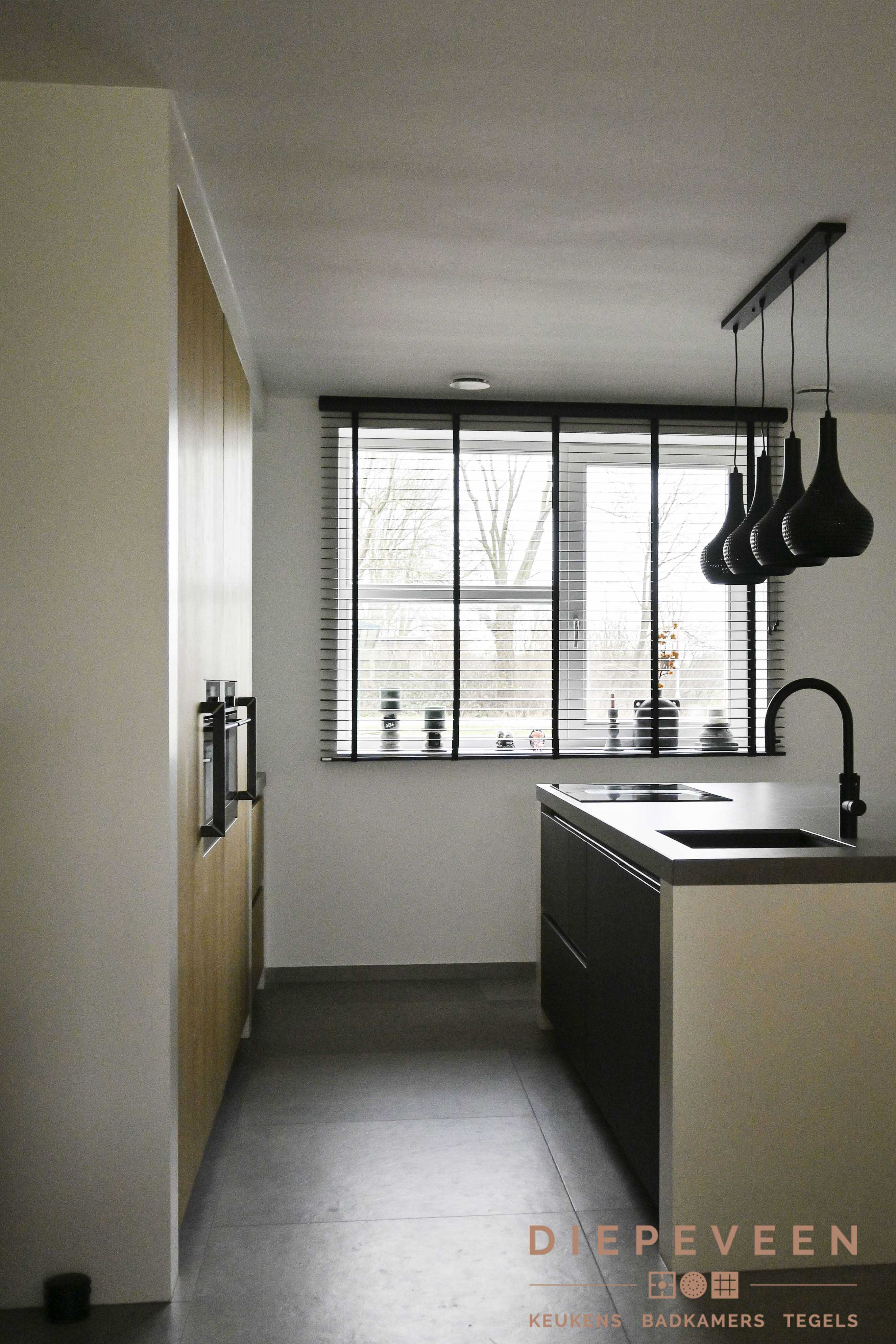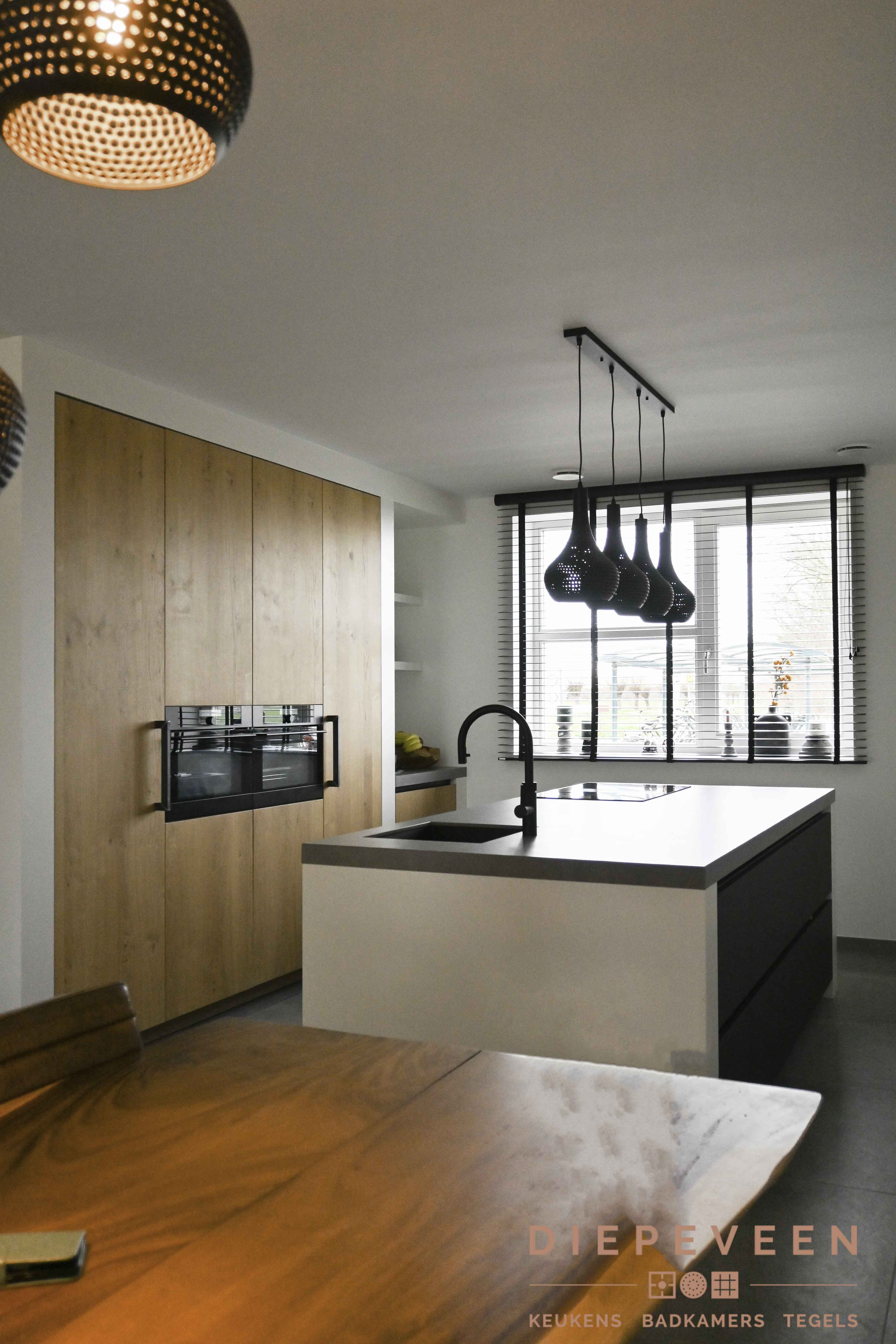 Een comfortabele keuken met eiland voorzien van allerlei handigheidjes. Neem de zwarte quooker kraan een echte eyecatcher in deze keuken! Of de zwarte multifunctionele oven met magnetronfunctie!