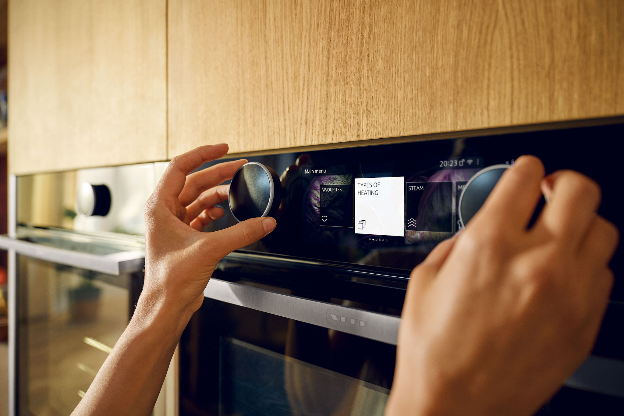 Dankzij Flex Control bepaalt u zelf hoe u uw keukenapparatuur bedient. Het grote Full Touch TFT-scherm biedt ruimte voor één of twee Twist Pad Flex® knoppen. Draaien, swipen of tikken; u kiest wat het beste bij u past.