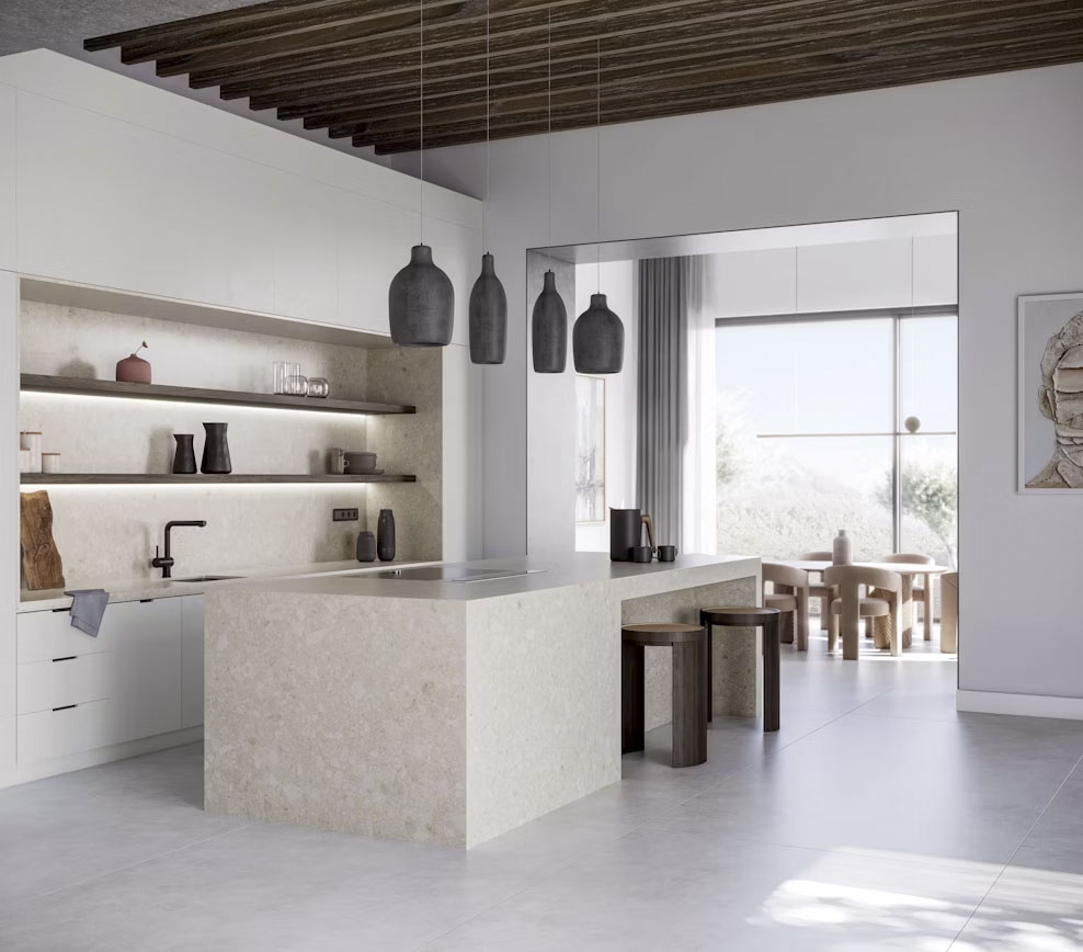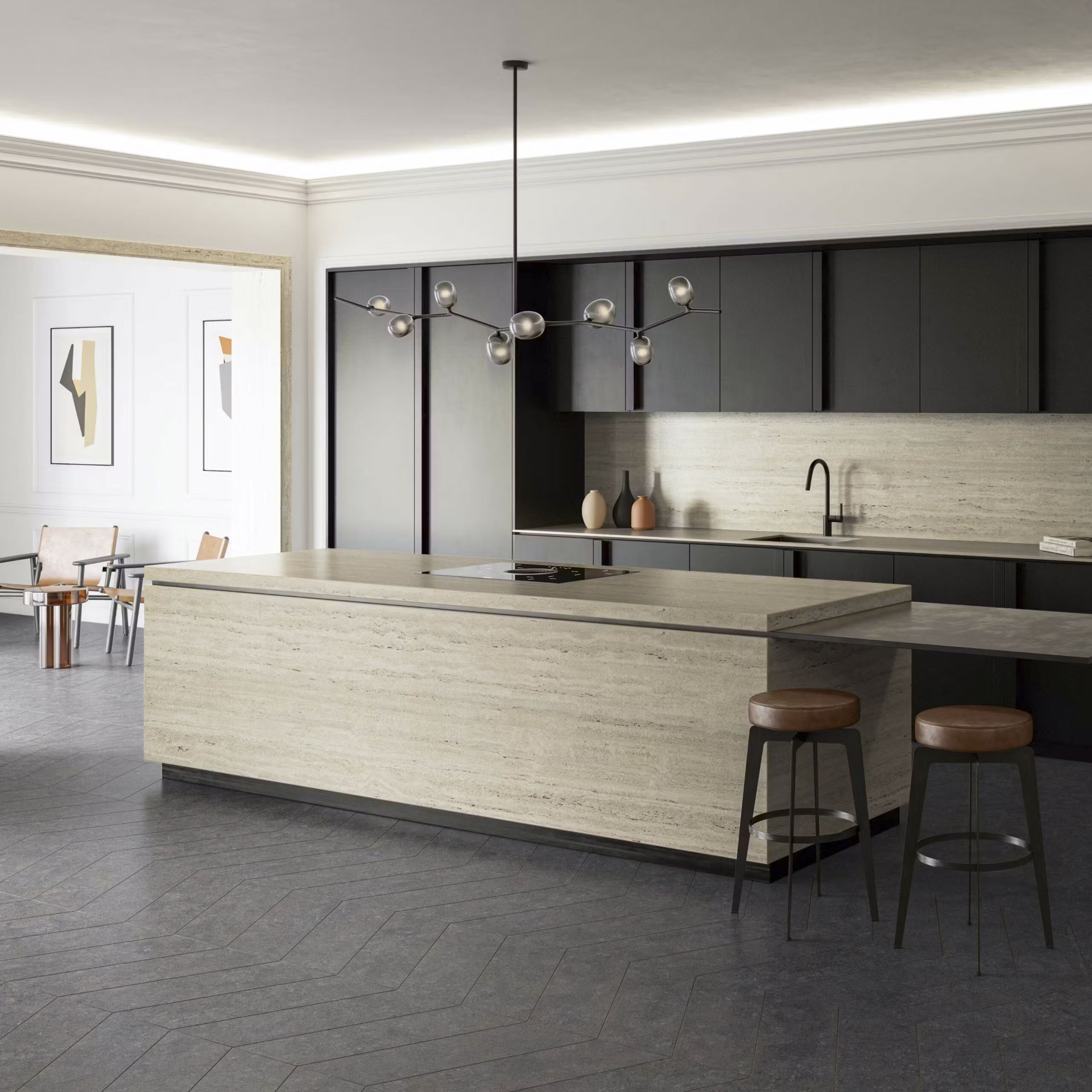 De Pietra Kode collectie is een vernieuwende interpretatie van klassieke stenen zoals Vicenzasteen, Travertin marmer en Ceppo di Gré. In samenwerking met ontwerper Daniel Germani kregen deze tijdloze materialen een moderne twist. Het resultaat? Natuurlijke kleuren en patronen die een luxe uitstraling aan uw keuken geven.
