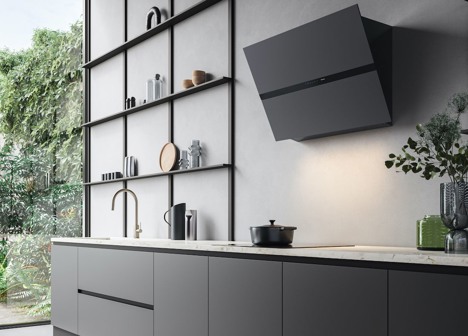 Fusion - De nieuwe afzuigkap Fusion van Falmec in de categorie schuine kappen valt op door zijn eenvoudige en strakke ontwerp, met geometrische lijnen en een afwerking die een bijzonder effect heeft dankzij het matte glas, dat mooi contrasteert met het gepolijste profiel waar het aanraakbedieningspaneel is geplaatst. Fusion is voorbereid, in de filterversie, voor de installatie van het Carbon.Zeo geurfilter, dat binnenin de kap kan worden geplaatst. Dimbare LED-verlichting zorgt voor helderheid boven het kookgebied.