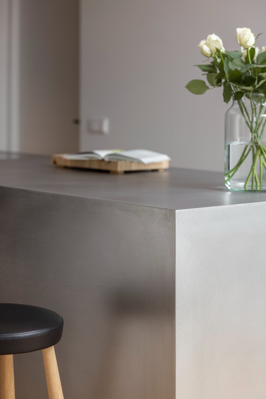 Deze super strakke en moderne keuken straalt rust en minimalisme uit. Het rechte lijnenspel en de symmetrie creëren rust.