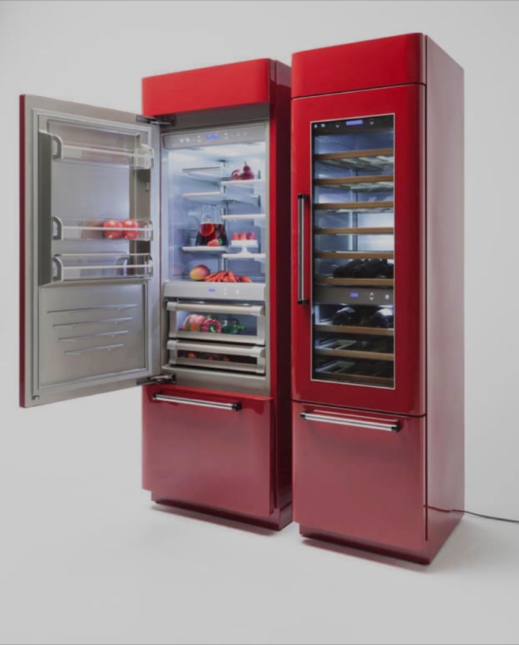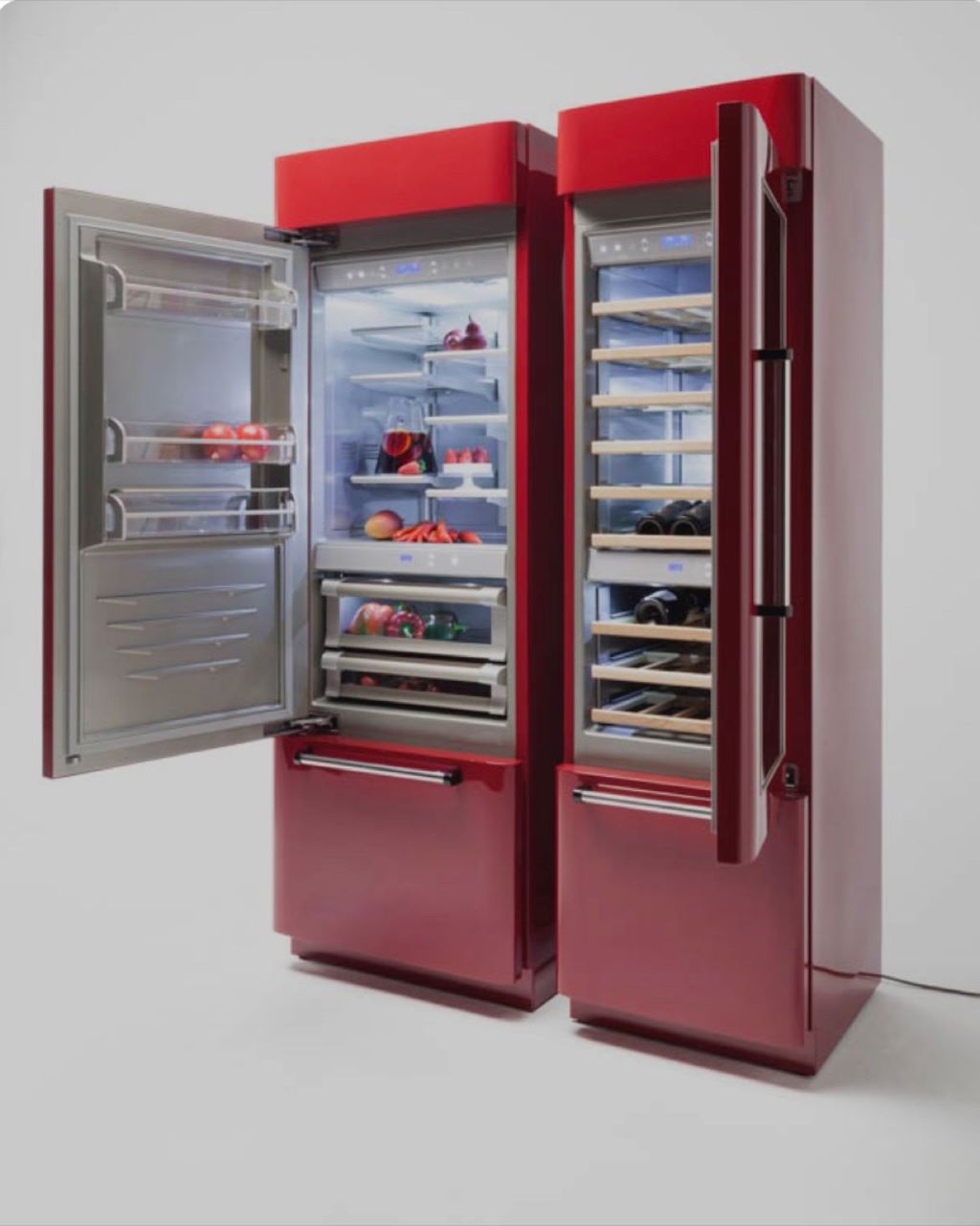 Zowel koelkasten, wijnkasten (ook 90cm) maar ook een prosciutteria (bewaarkast voor ham en worsten). Mooier gaat het niet worden! Beter ook niet!