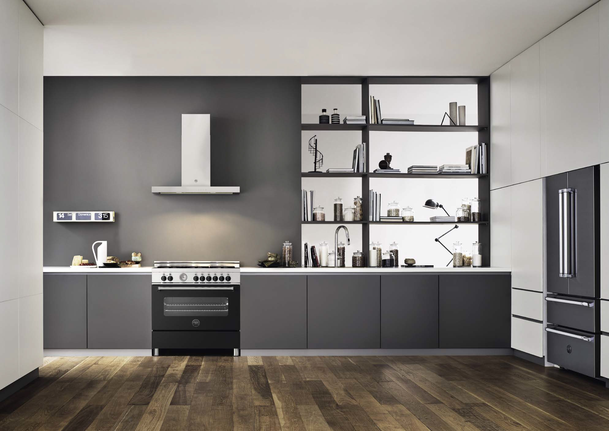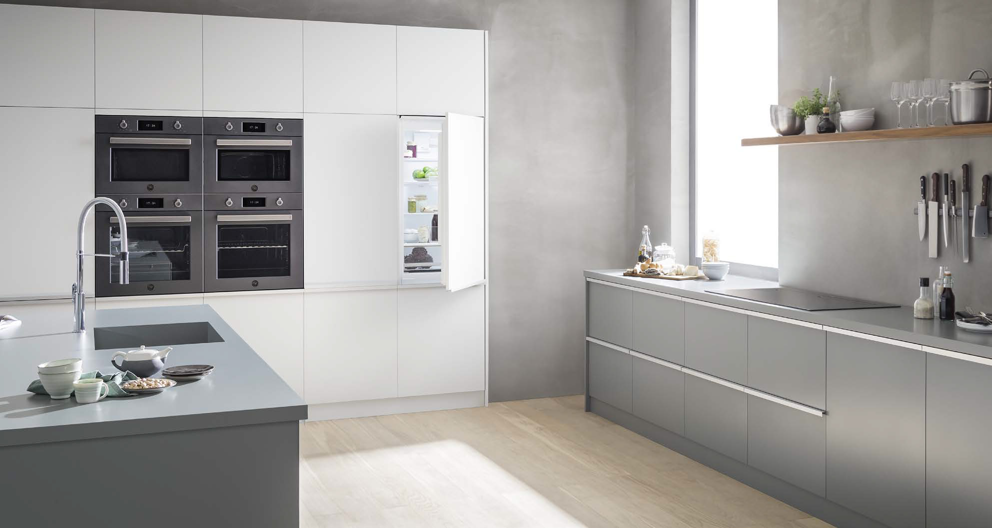 Top techniek in tijdloos design. Uniek materiaal gebruik met RVS, zink, koper en carbonio. Multifunctie ovens tot Total Steam met pyrolyse.