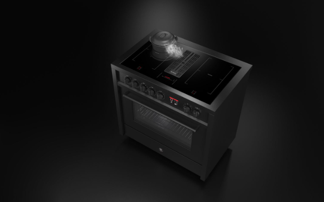 De STEEL Mistral is het eerste fornuis ter wereld, waarin een oven, inductiekookplaat en kookveldafzuiging gecombineerd wordt.
