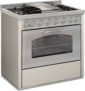 De GD9 bestaat uit een gas of inductie kookplaat naar keuze. Daaronder zit een statisch/geventileerde multifunctionele oven van 90 CM.