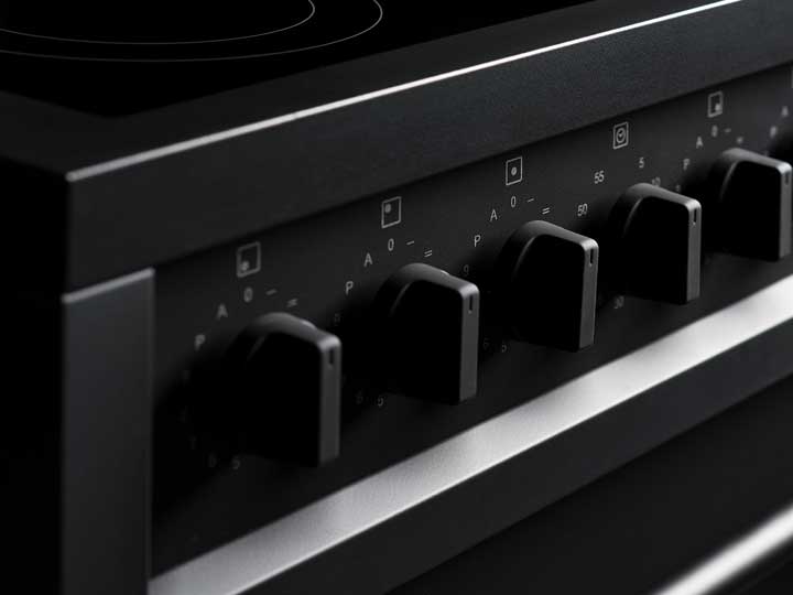 De massief zwart stalen bedieningsknoppen voorzien van silk-touch coating, zorgen voor ongekend veel bedieningsgemak en controle tijdens het koken op inductie en maken op ergonomisch vlak het grote verschil ten opzichte van tiptoets bediening!