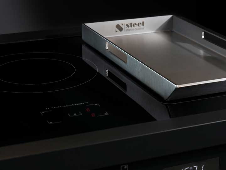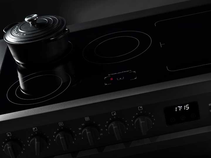 Met het krachtige STEEL All Black FLEXzone inductiefornuis 90cm en 100cm breed, spelen we in op de absolute trend; stoer en sober.