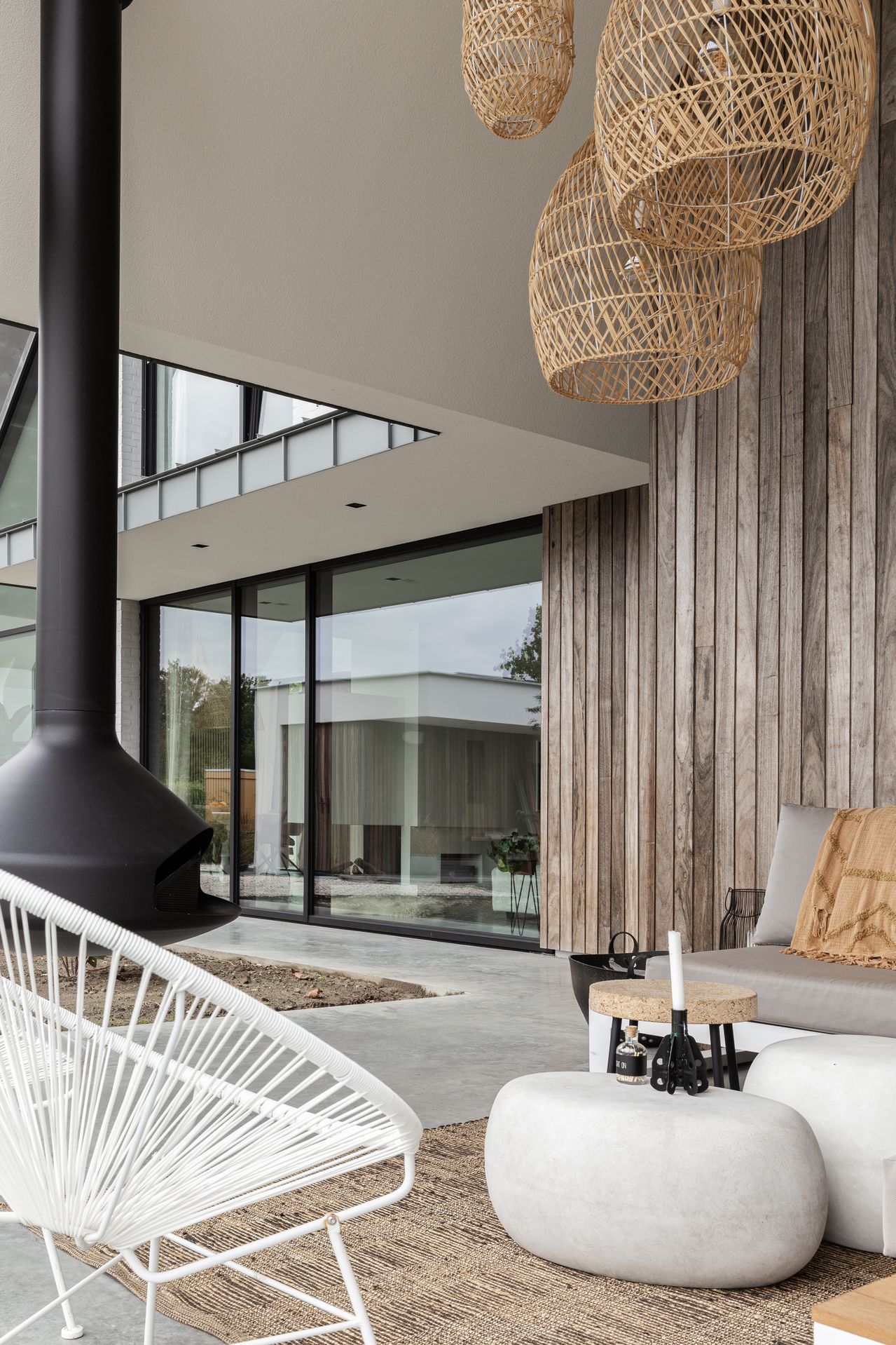 In dit poolhouse in Cuijk is gekozen voor beton in de kleur donkergrijs, American Clay in de kleur Shadyside 105 en beton ciré in de kleur NSC S 5502 Y