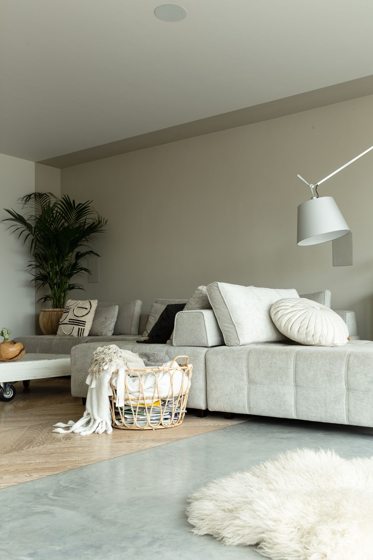 Gevlinderde betonvloer in de kleur 75% midden- en 25% donkergrijs en beton ciré wanden in de kleur NCS 7000 en NCS 3020 in Bunschoten-Spakenburg