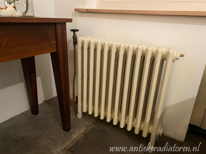 Antieke gietijzeren radiatoren bij een tevreden klant.
