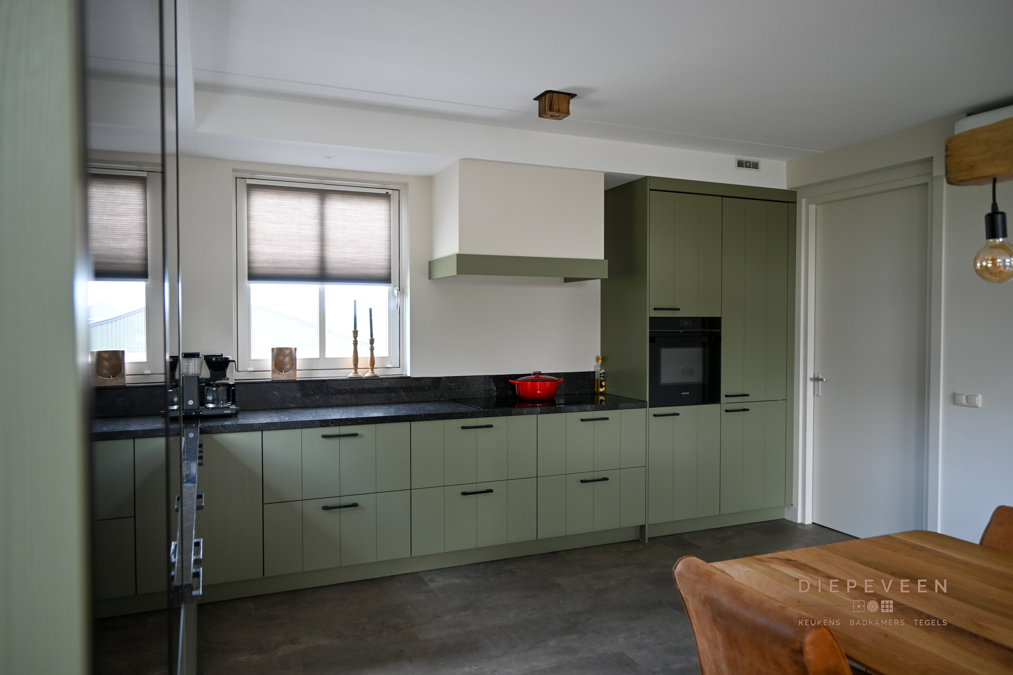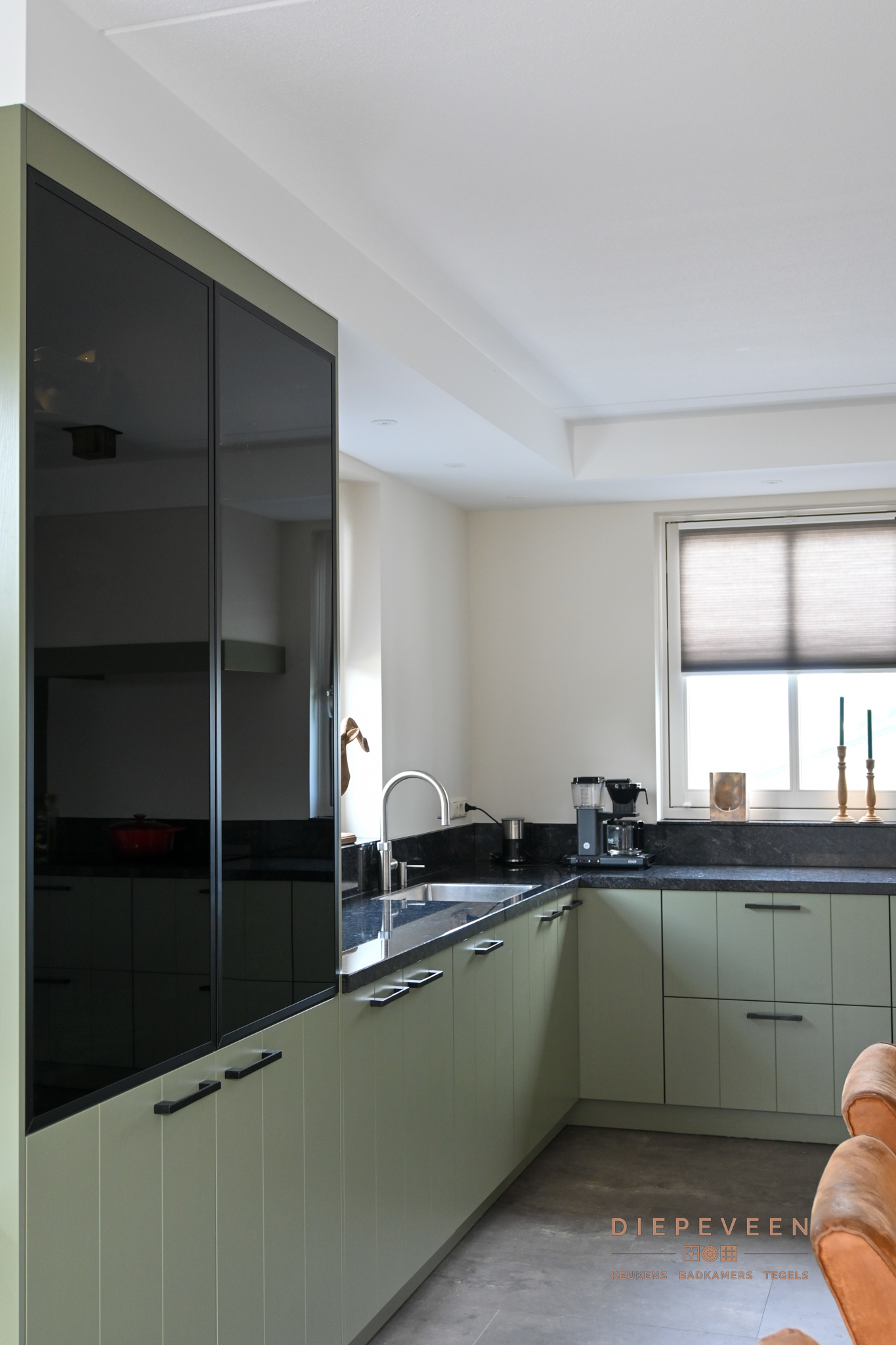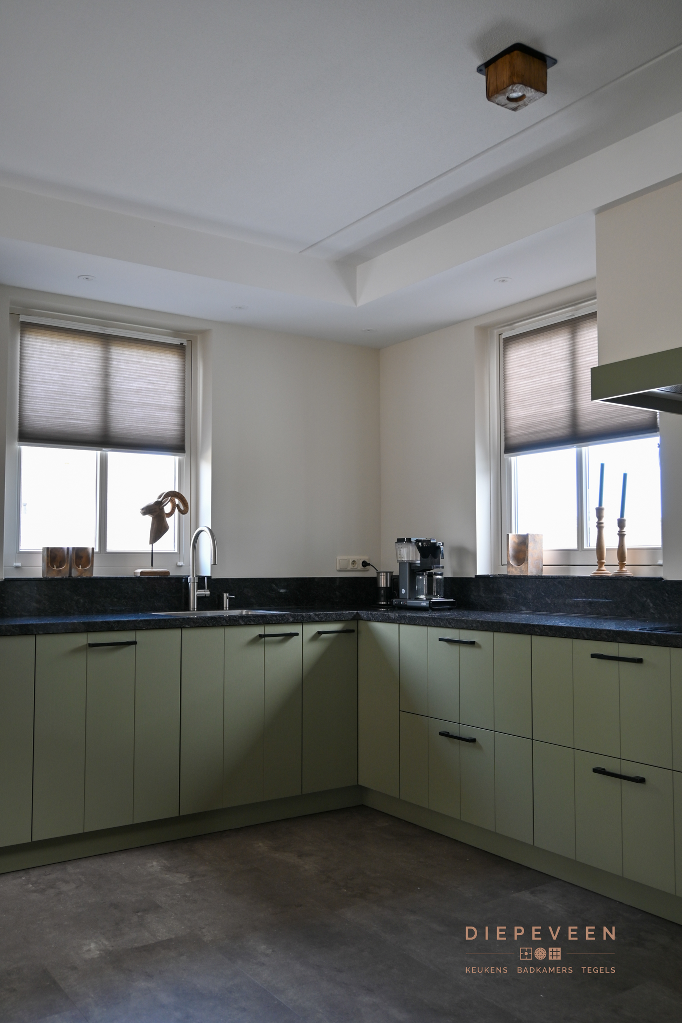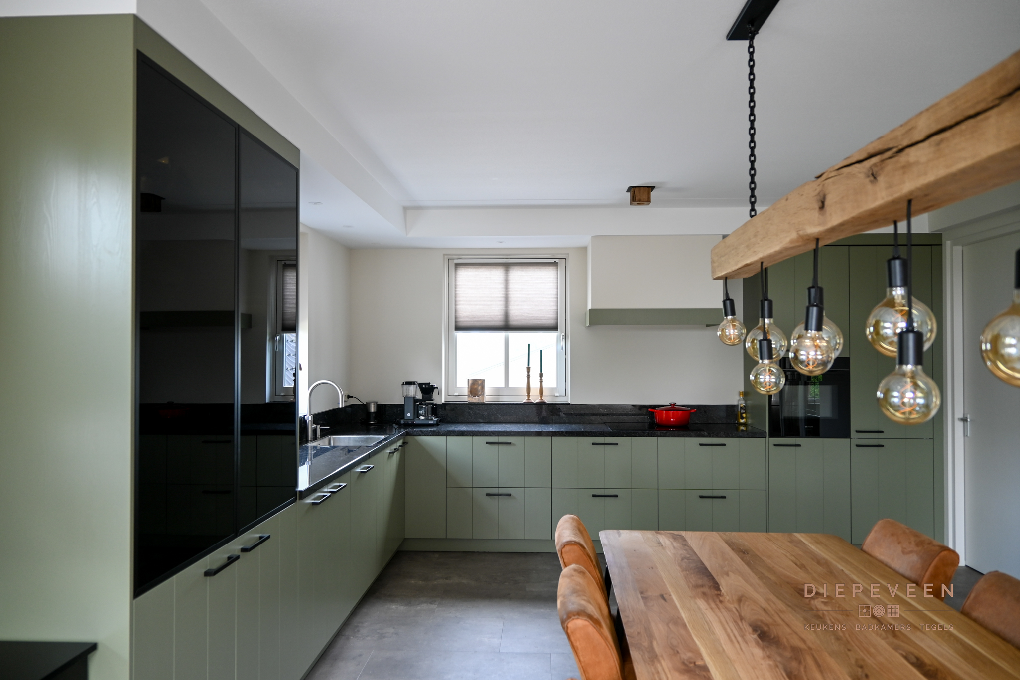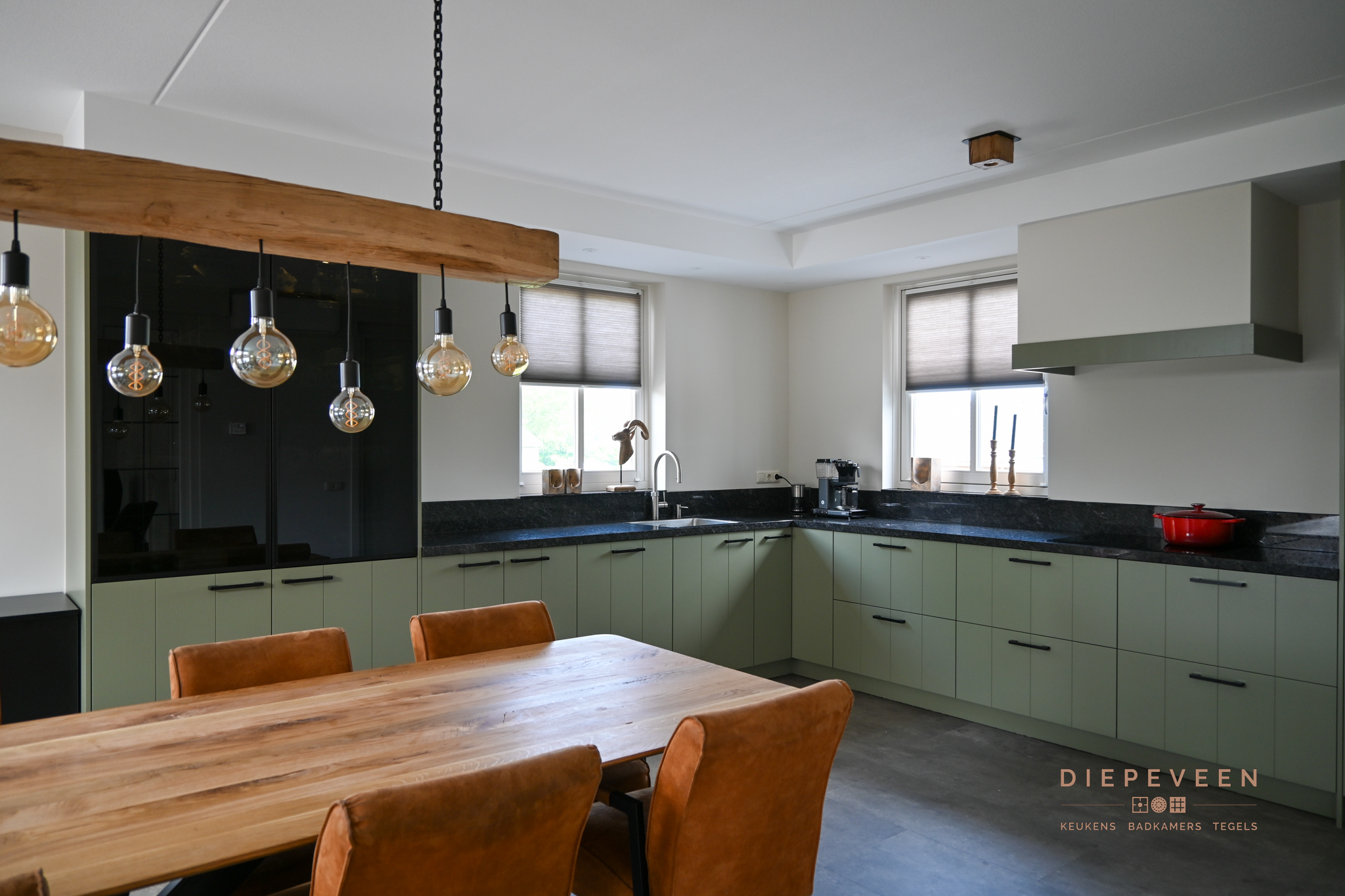 || VEELZIJDIG GROENE KEUKEN || Wat een prachtige ruimte!???? En wat geeft deze keuken een uitnodigende sfeer. De lichte groene tint van deze keuken zorgt voor een kalmerende en natuurlijke uitstraling,???? prachtig gecombineerd met een donker graniet werkblad en als finishing touch een strakke zwarte handgreep. En heb je de prachtige stijlvolle glaskast al gezien? Een prachtig eindresultaat, met in het hart van de ruimte een grote tafel, want door gebruik te maken van een hoekopstelling behoud je optimaal de leefruimte .Dit alles resulteert in een prachtig kleurenpallet. ????