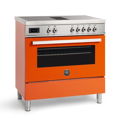 Een vrijstaand inductiefornuis: een inductiekookplaat, een oven en kookveldafzuiging