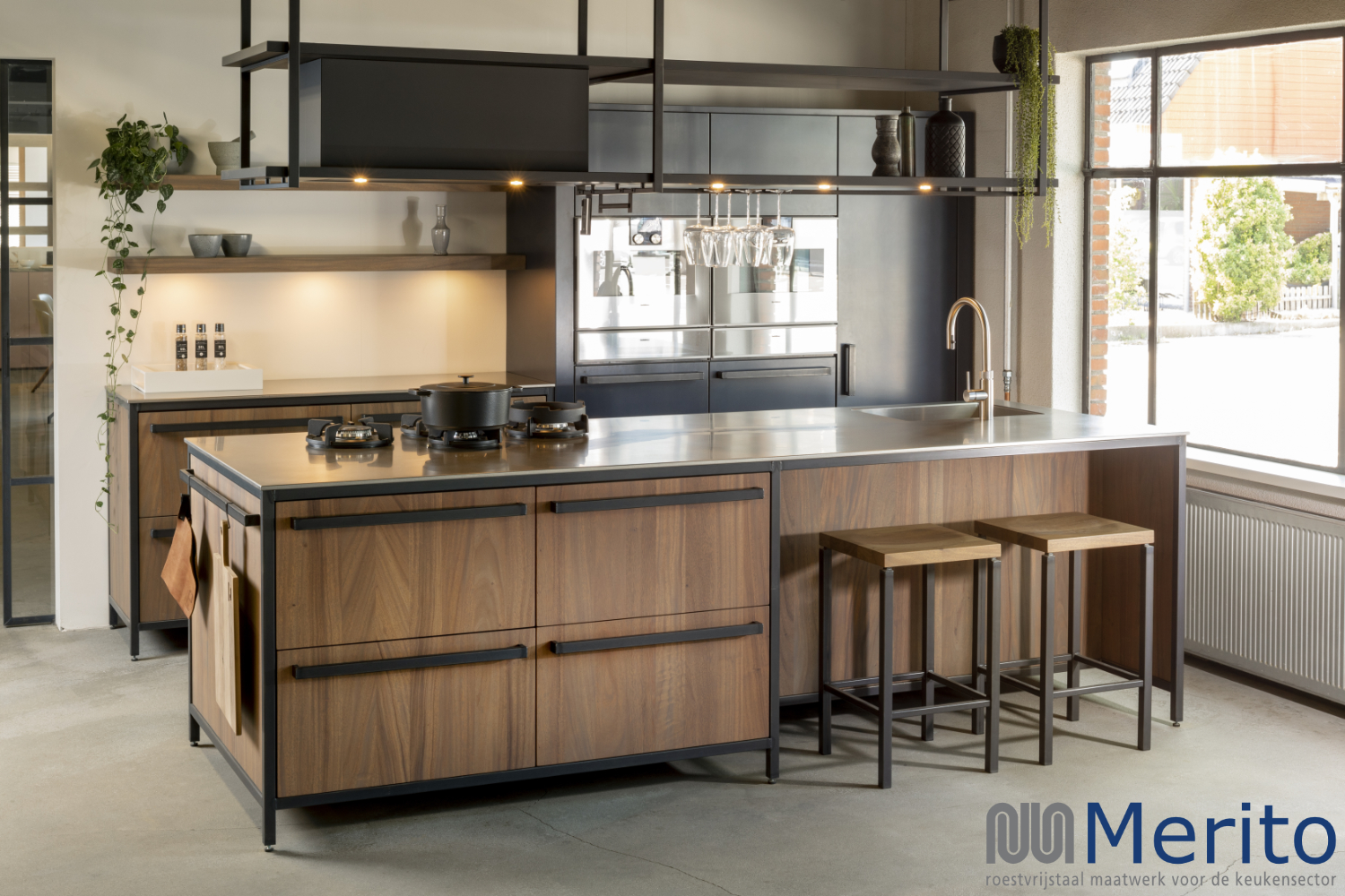 RVS in je keuken is de ideale basis voor industrieel ontwerp. Hier wil je familie en vrienden maar al te graag verwelkomen toch? Nóg meer inspiratie voor je keuken kun je vinden op merito.nl