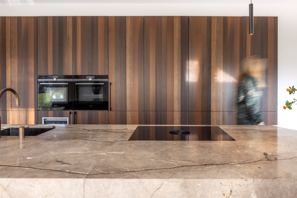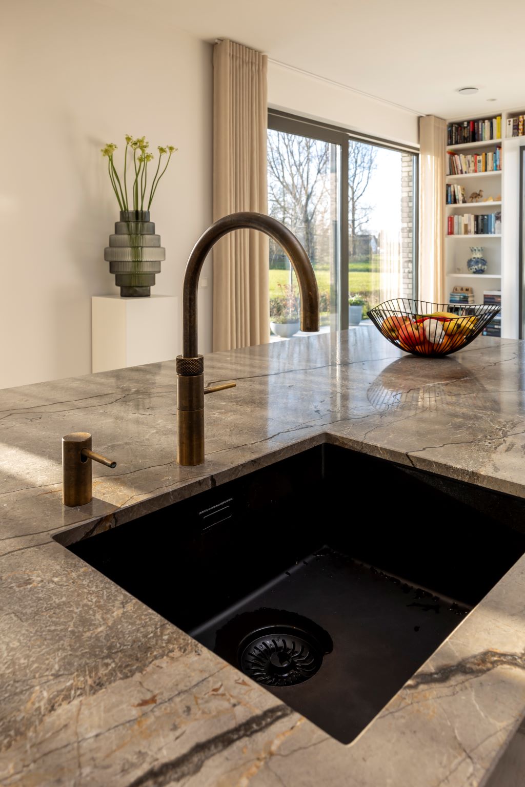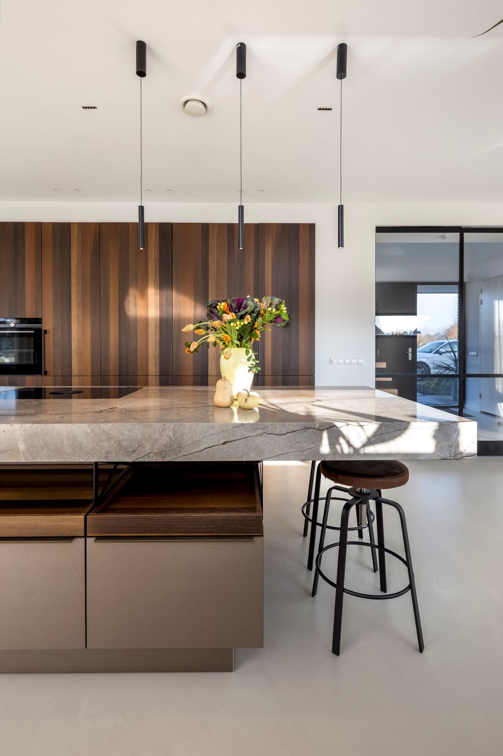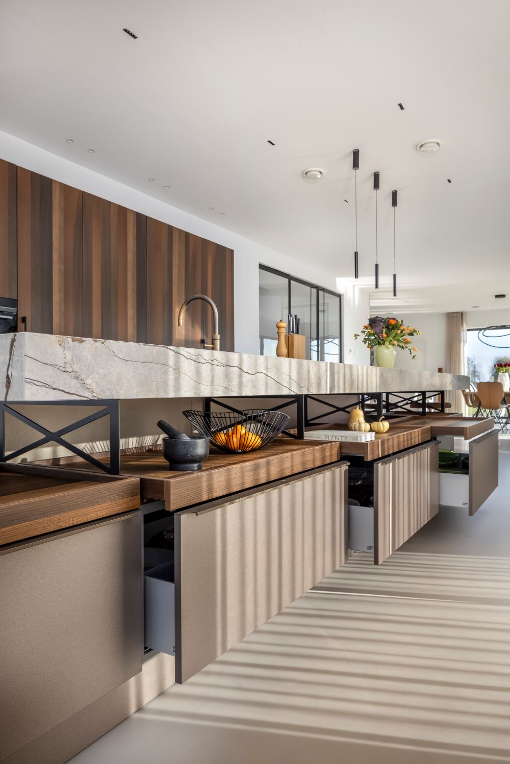 Door natuurlijke materialen zoals hout en steen met moderne elementen te combineren, krijgt de keuken een evenwichtige uitstraling waarin traditie en innovatie hand in hand gaan.