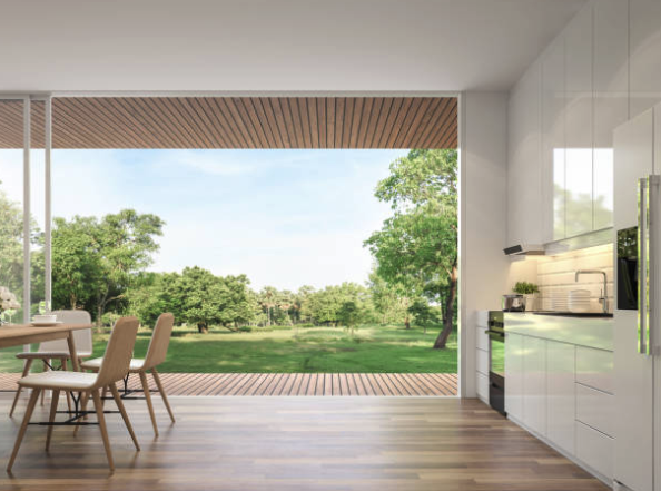 Bovendien zorgen slimme verlichtingssystemen voor een aangepaste sfeer en energie-efficiëntie. Deze systemen kunnen worden geprogrammeerd om de verlichtingsniveaus automatisch aan te passen, waardoor het energieverbruik wordt geoptimaliseerd en de perfecte sfeer voor koken en entertainment wordt gecreëerd. Deze integratie strekt zich uit tot beveiligingssystemen, die bewaking op afstand en verbeterde veiligheidsfuncties bieden.