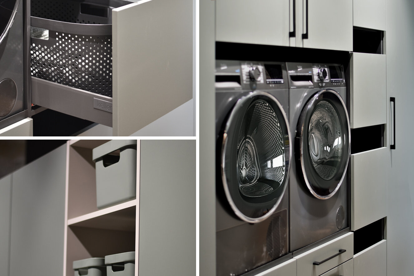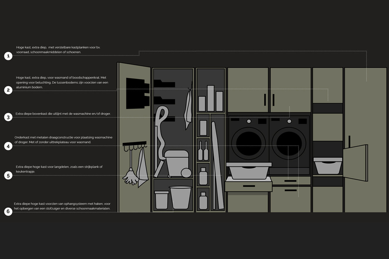 Het kastenprogramma van Keller maakt het mogelijk om ook een bijkeuken, berg- of wasruimte op een mooie manier in te richten.