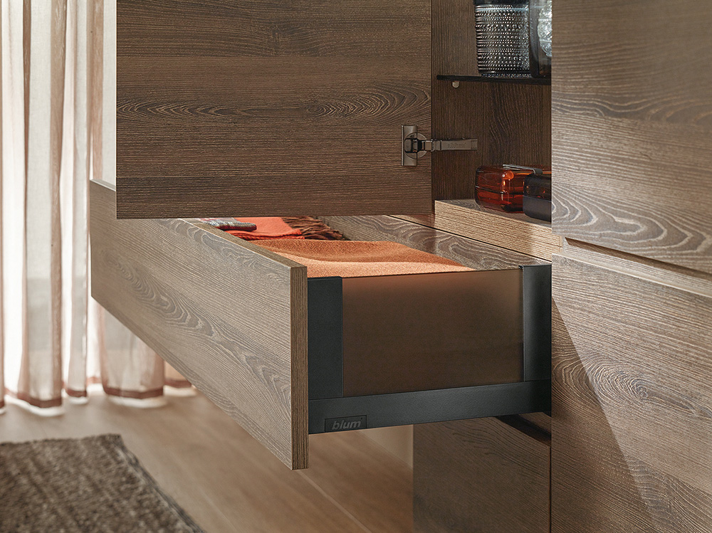 Donkere kleuren worden steeds populairder in ons interieur. Donkere meubels stralen luxe uit én zijn vooral tijdloos. Voor een uniform uitzicht wordt ook de binnenkant van de meubels steeds vaker in een donkere kleur afgewerkt. Een noodzakelijk maar opvallend element in veel van deze kasten zijn de vernikkelde scharnieren. Daarom komt Blum nu met een vernieuwing in zijn gamma.
