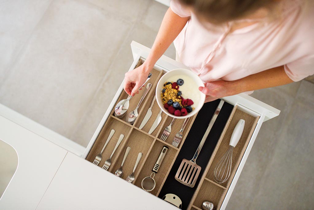 Creëer orde en rust met de Orgalux lade-indelingen, afgewerkt in stijlvolle materialen en eigentijdse kleuren. Zo vind je altijd een indeling die perfect in jouw droomkeuken past. Orgalux your life!
