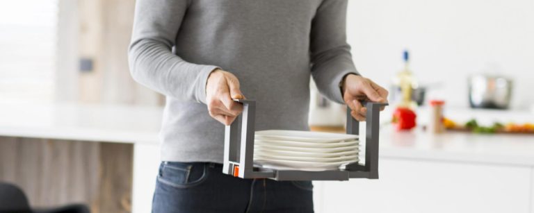 Een hele stapel borden tegelijk naar het terras brengen zonder brokken te maken? Kinderspel dankzij de bordenhouder voorzien van 2 stevige handgrepen waarmee je met het grootste gemak tot 12 borden tegelijk verplaatst. De bordenhouder is ook een praktische manier om borden veilig op te bergen. En om de vaatwasmachine snel leeg te maken: schone borden erin en alles in één beweging wegbergen. Dankzij de traploos verstelbare diameter passen zowel kleine dessertborden als grote borden met een diameter vanaf 18 cm tot 32 cm in deze handige bordenhouder.