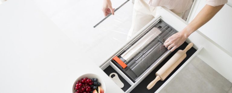 Aluminiumfolie nodig voor een bereiding en papillotte? Of vershoudfolie om voedingswaren af te dekken? De foliesnijder met compartimenten voor aluminium- en vershoudfolie komt als geroepen. Met het speciale snijmechanisme snij je aluminiumfolie af zonder kreuken of scheuren. Dankzij de speciale staaf rolt de vershoudfolie perfect af zonder aaneenklitten.