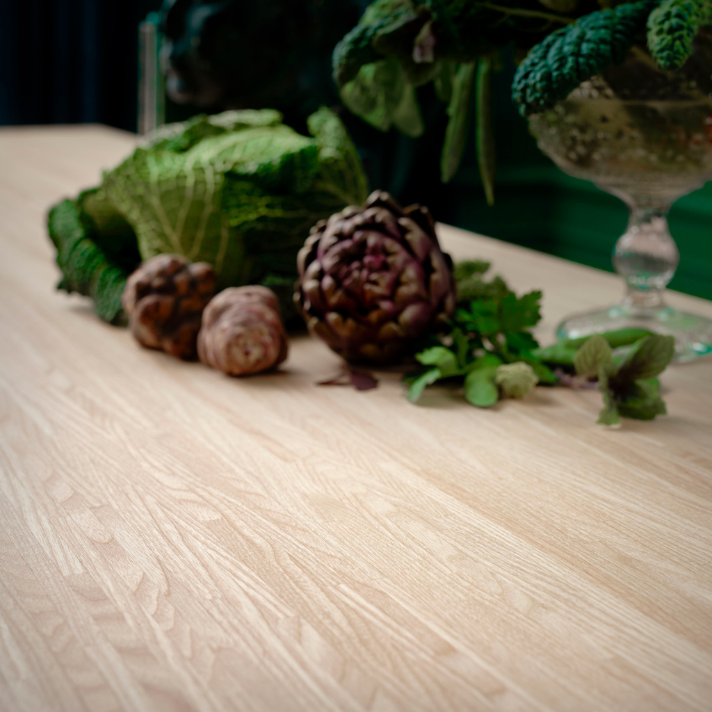 Het PINNARP werkblad heeft de uitstraling van massief hout, maar de designers van IKEA hebben voor dit werkblad massief essenhout op spaanplaat geplaatst. Dankzij deze slimme techniek is er minder hout nodig. En dat is weer goed voor het milieu. Het werkblad is uiteraard wel slijtvast en bestand tegen water en vocht.