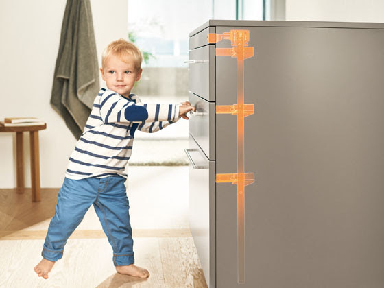 Als ouder moet je soms ogen in je rug hebben om alles in goede banen te leiden. Met het sluitsysteem CABLOXX van Blum heb je alvast één zorg minder. Het systeem brengt extra veiligheid in ladekasten zonder in te boeten aan het design. CABLOXX garandeert stevige meubels dankzij de geïntegreerde omvalbeveiliging. De voorraadladesluiting verhindert dat meerdere lades tegelijk openen, zodat het evenwicht steeds stabiel blijft.