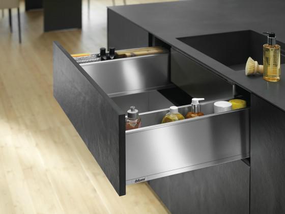 Niets lijkt zo verloren als de ruimte onder de spoelbak. Deze kastruimte is vaak allesbehalve georganiseerd en efficiënt ingericht. Blum heeft hier met de spoelbaklade een fascinerende oplossing voor: deze lade benut de beschikbare ruimte namelijk optimaal. Zo blijven zelfs sponzen, vaatdoekjes en afwasmiddel uit het zicht en toch binnen handbereik!`
