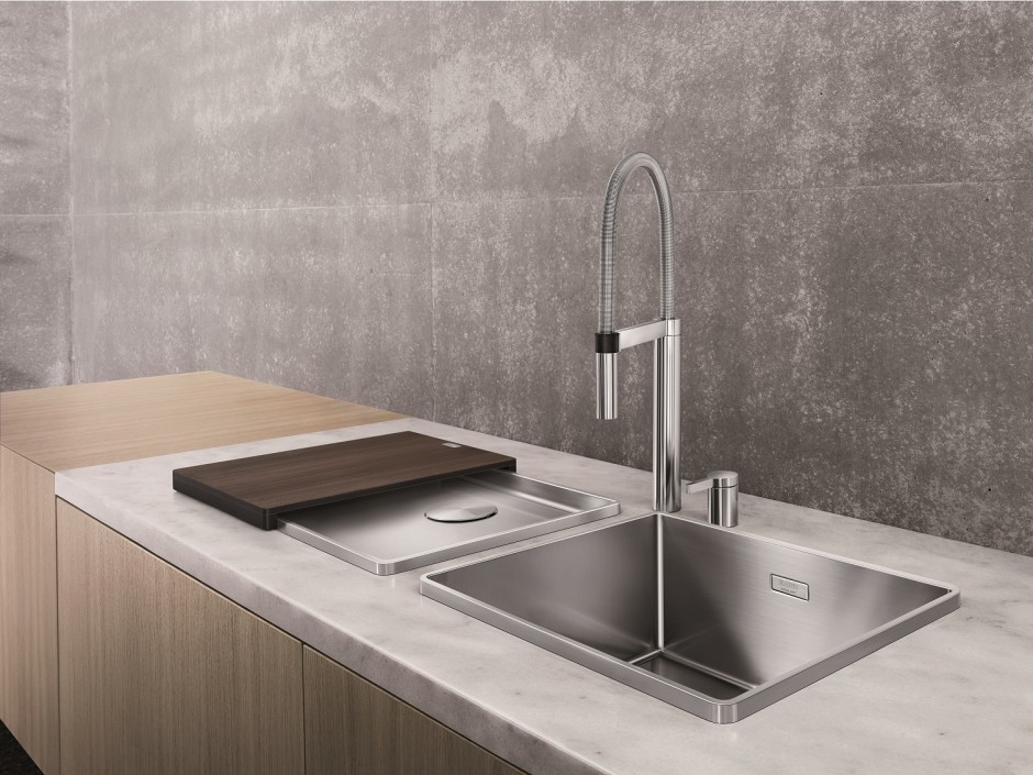 Met de BLANCOCULINA-S Duo mengkraan in het SteelArt-gamma hebben ambitieuze hobbykoks vanaf nu een bijkomende mogelijkheid om hun keuken een professionele touch te geven. Het is zo dat niet enkel het esthetisch aspect van deze SteelArt mengkraan doet denken aan een professioneel mengkraanmodel. Met zijn doordachte, functionele details en zijn hoogwaardige kwaliteit inspireert de CULINA-S Duo elke keuken- en designfanaat. De mengkraan is uitgerust met een aparte bedieningshendel, die op een plaats naar keuze in de nabijheid van de spoelbak geplaatst kan worden. De nieuwe BLANCOCULINA-S Duo is zodus perfect aangepast aan de exclusieve SteelArt spoelbakken zonder kraanrichel, in het bijzonder voor BLANCO ATTIKA. Daarnaast harmoniseert deze mengkraan ook met tal van andere hoogwaardige BLANCO spoelbakken.