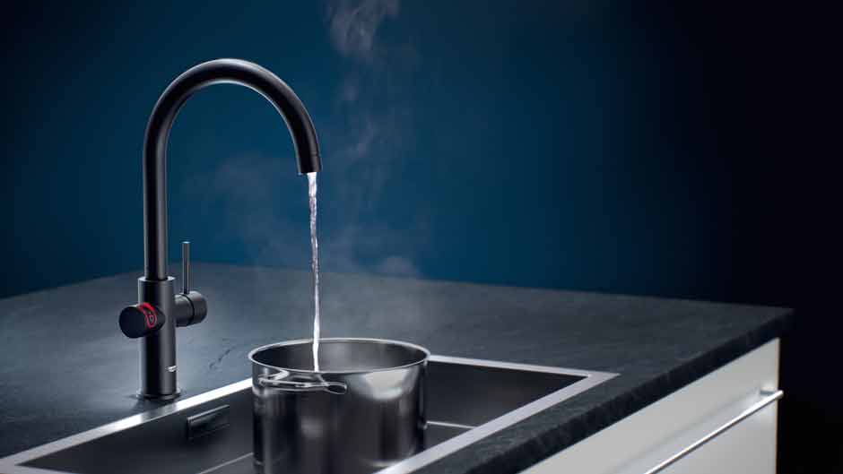 De waterkoker, en dus het wachten tot het water kookt, vertraagt het gevoel van gelukzaligheid. Of de vraag van kinderen of het eten klaar al is, terwijl je wacht tot het water kookt. Of de momenten dat de waterkoker aanstaat voor een snelle kop thee tussen de vergaderingen door – maar dat het water alweer is afgekoeld op het moment dat jij je dit herinnert. GROHE Red levert kokend water rechtstreeks uit de kraan, waardoor je niet meer hoeft te wachten tot het water kookt en zo tijd en ruimte bespaart.