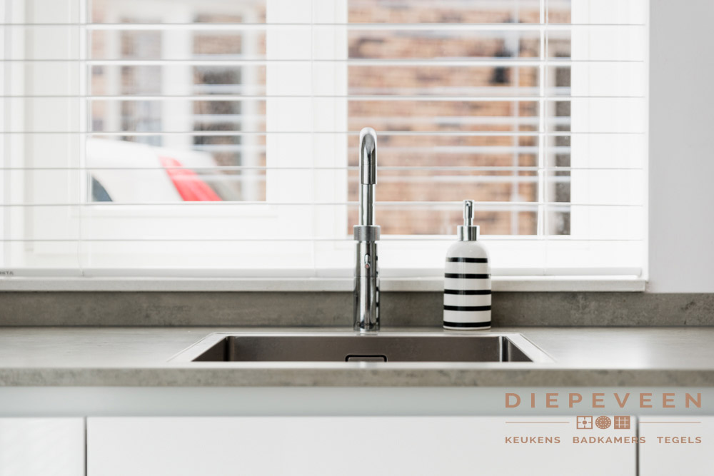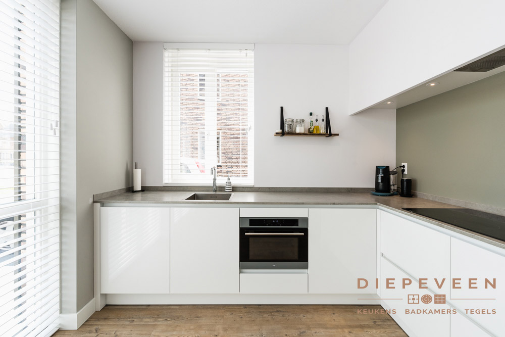 Moderne greeploze keuken met composiet werkblad 6cm, verdere info www.diepeveen.nl