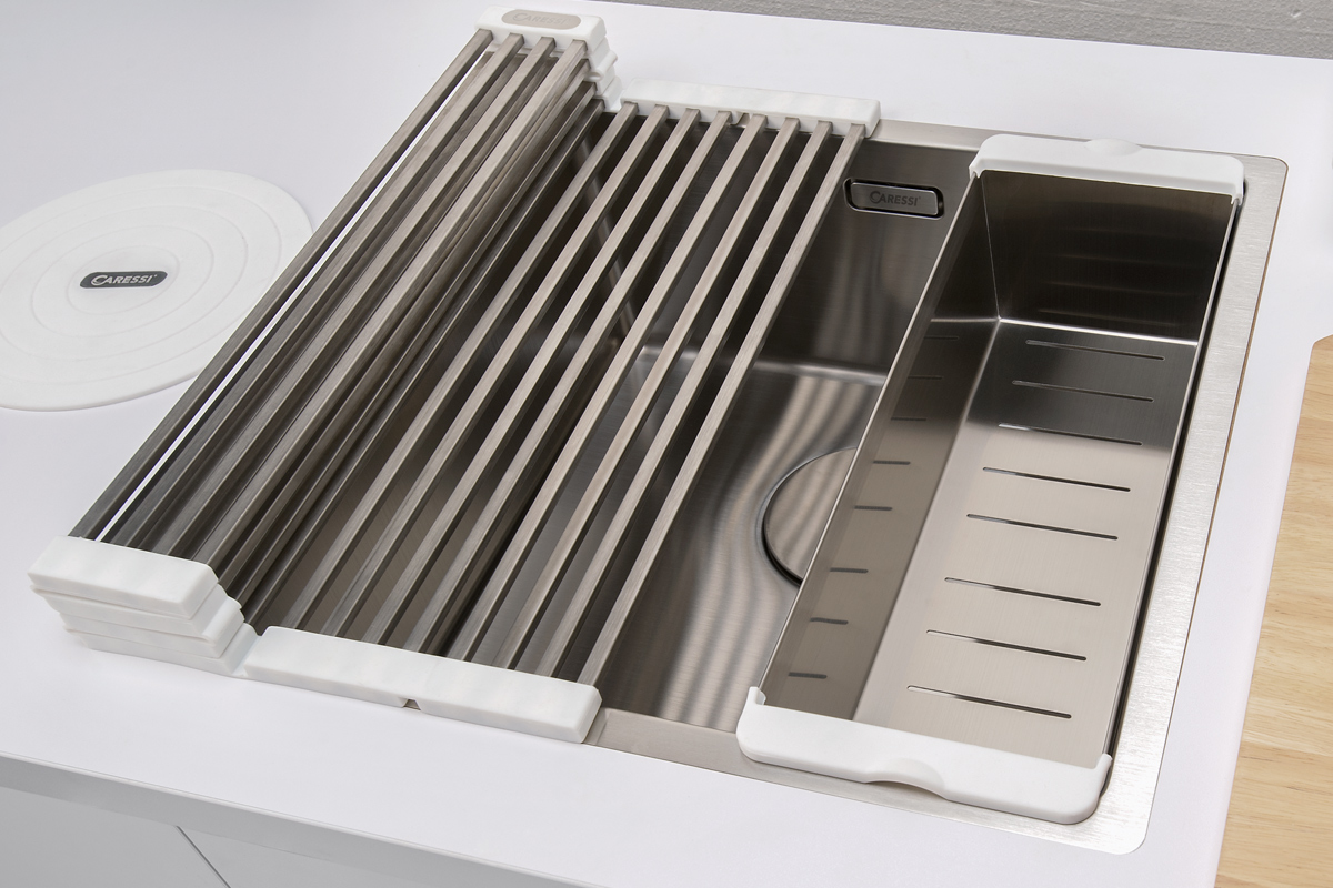 Met deze RVS-kranenserie van Caressi bespaart u water door de tweestandenhendel en aangepaste waterstraal.