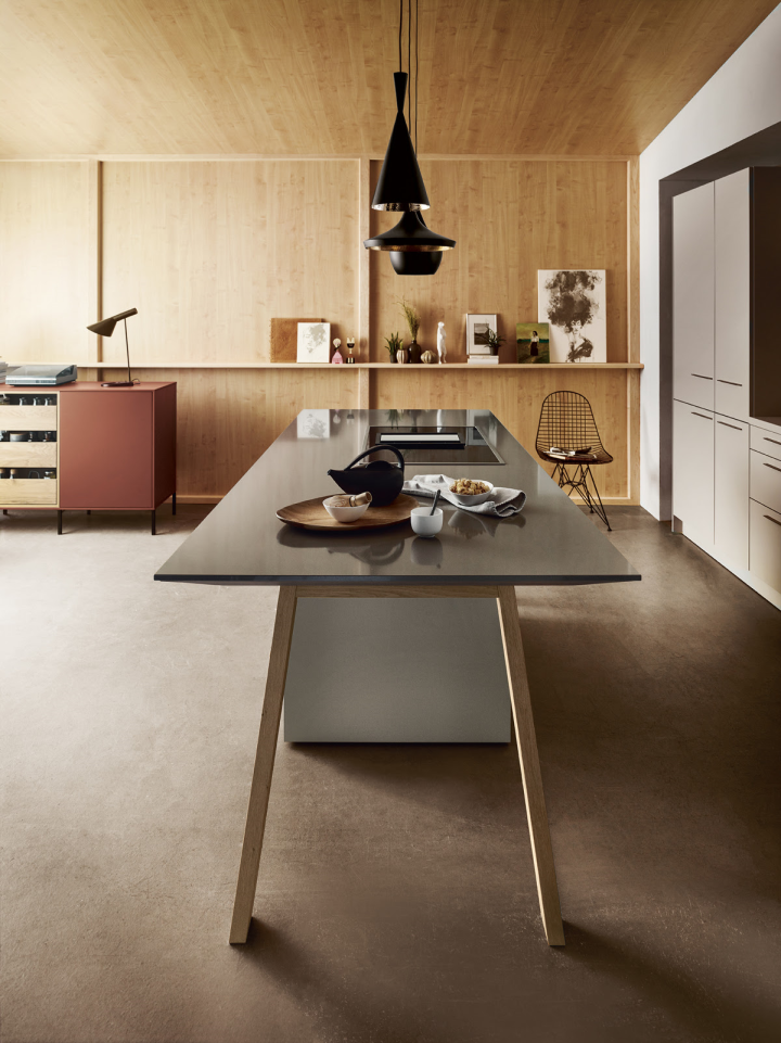 Een minimalistisch statement in elke keuken. Dit jaar werd de tafel in een nieuw jasje gestoken en nu biedt ze ook de mogelijkheid om er onzichtbaar een werkbladafzuiging in te integreren.