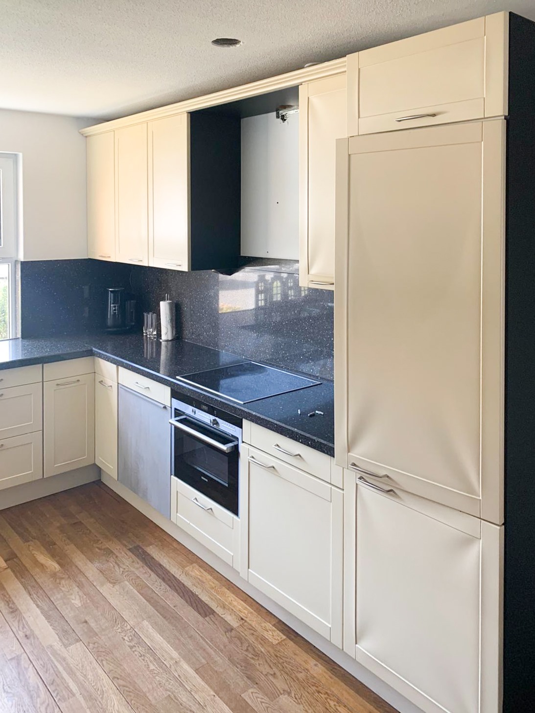 Een mooie keukenrenovatie waarbij de bestaande keuken een compleet nieuwe moderne uitstraling heeft gekregen.