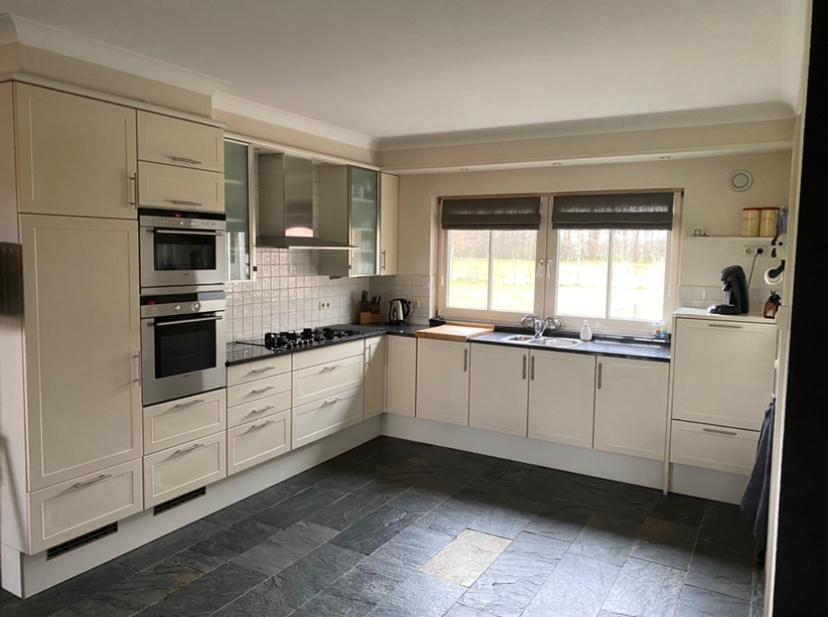 Door deze keukenvernieuwing komt niet alleen de keuken, maar ook de natuurstenen vloer een stuk beter uit de verf.