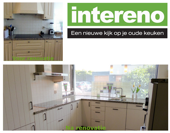 Laat u dan in elk geval verrassen door het uitgebreide keukenrenovatieprogramma van Intereno. Want waarom zou je een nieuwe keuken kopen als je bestaande keuken nog van prima kwaliteit is? De vakkundige Intereno monteurs veranderen je huidige keuken meestal al in één dag in een keuken van deze tijd. Waar je weer vele jaren plezier van hebt. Je krijgt in één dag letterlijk een nieuwe kijk op je oude keuken.