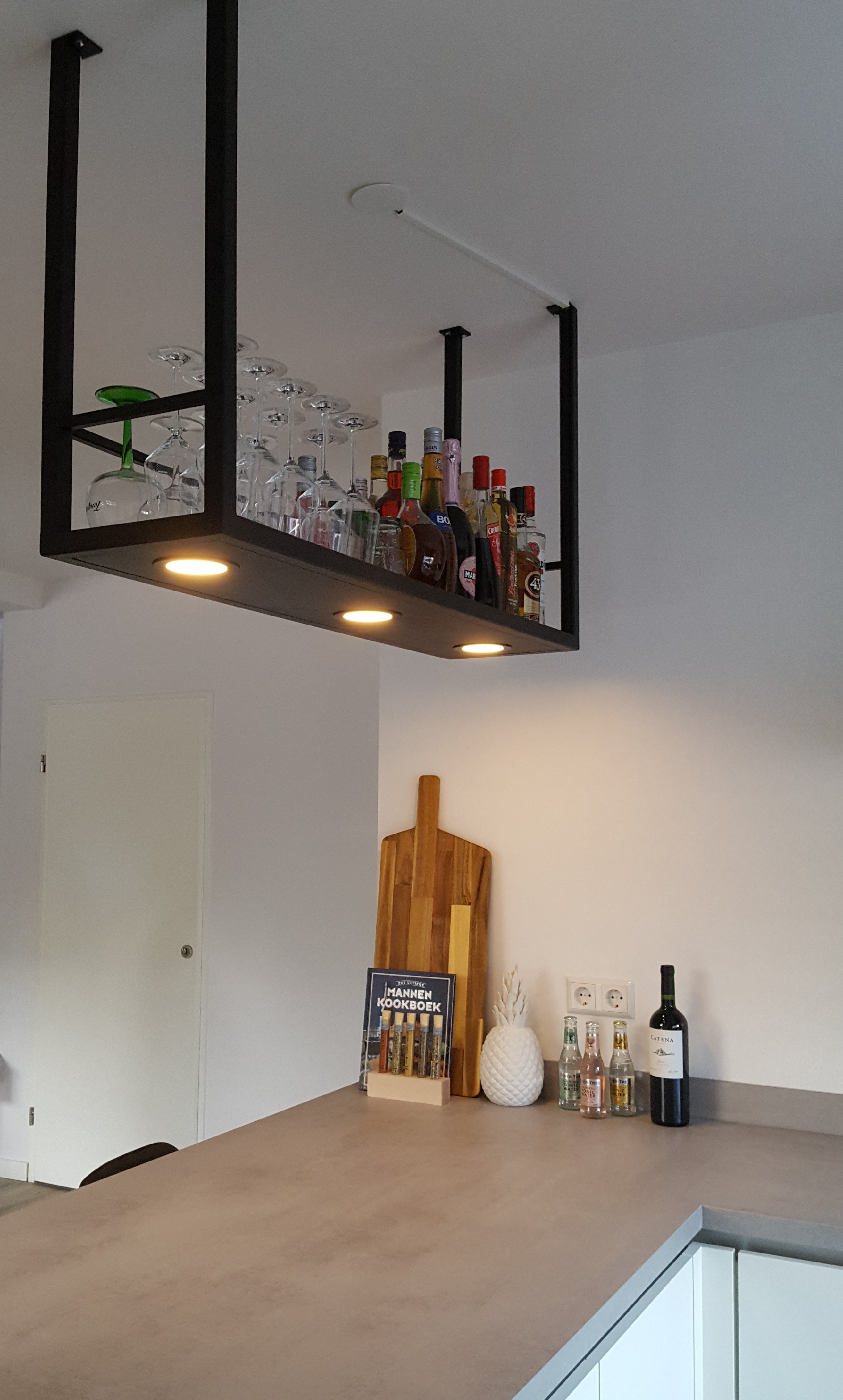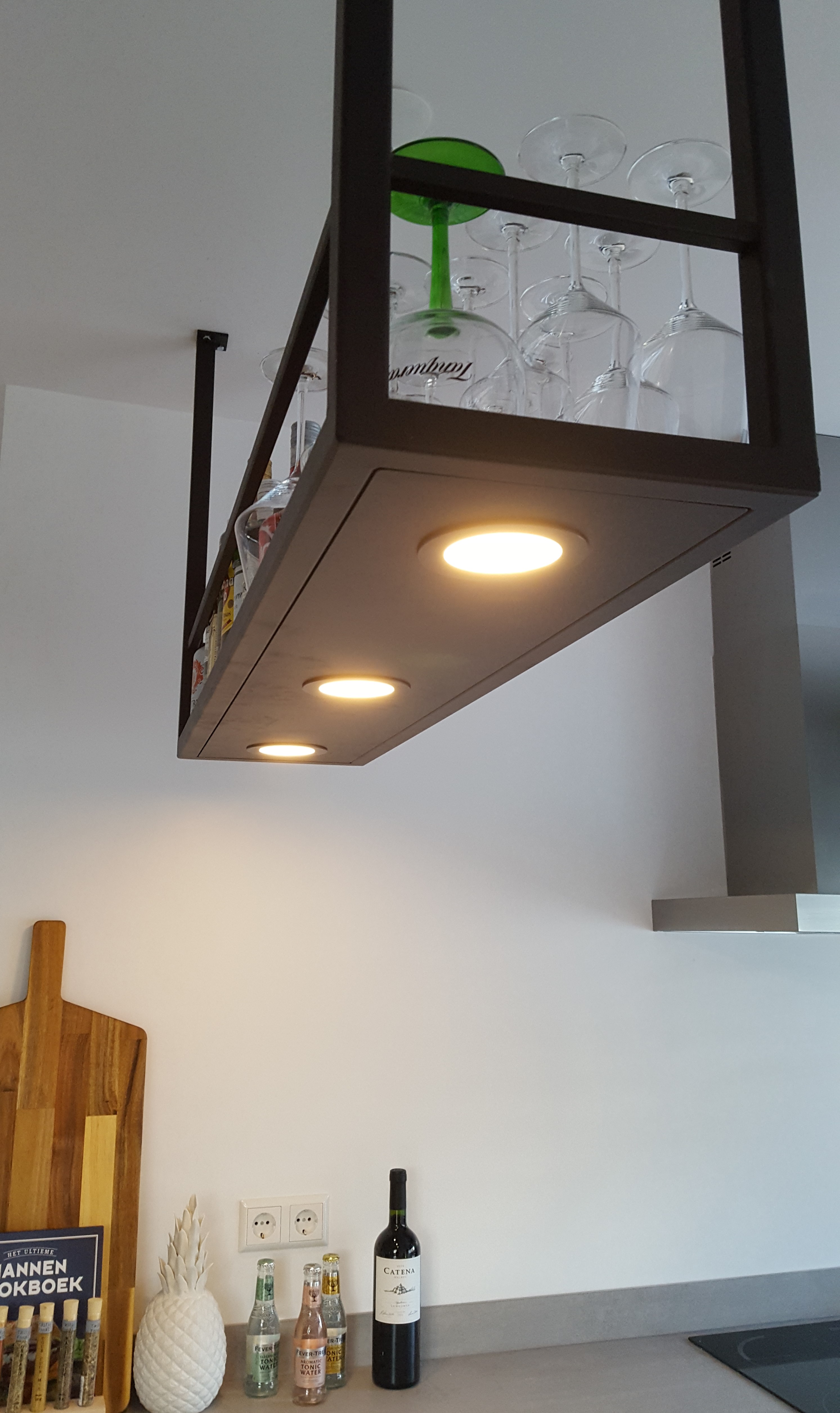 Dit flessenrek is op onze site in allerlei maten en met verschillende verlichting systemen te bestellen.