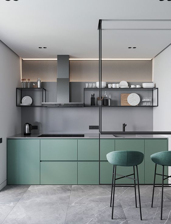 In principe past in deze keuken alle tinten groen en roze, al helemaal met een matte afwerking.