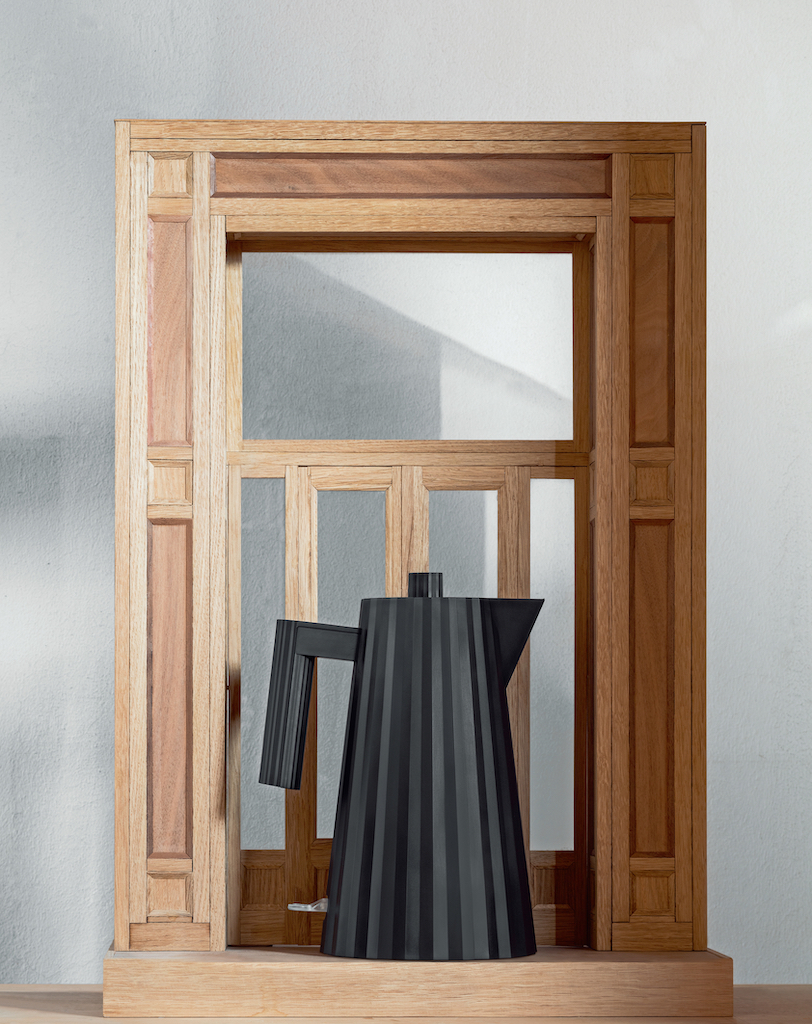 Michele De Lucchi haalde inspiratie uit de haute couture en daar kwam waterkoker Plissé uit voort.