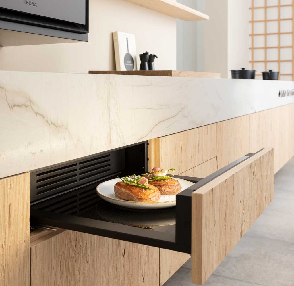 Multifunctionele lade van BORA: waarmee je kunt opwarmen, warmhouden, ontdooien of op lage temperatuur kunt koken.