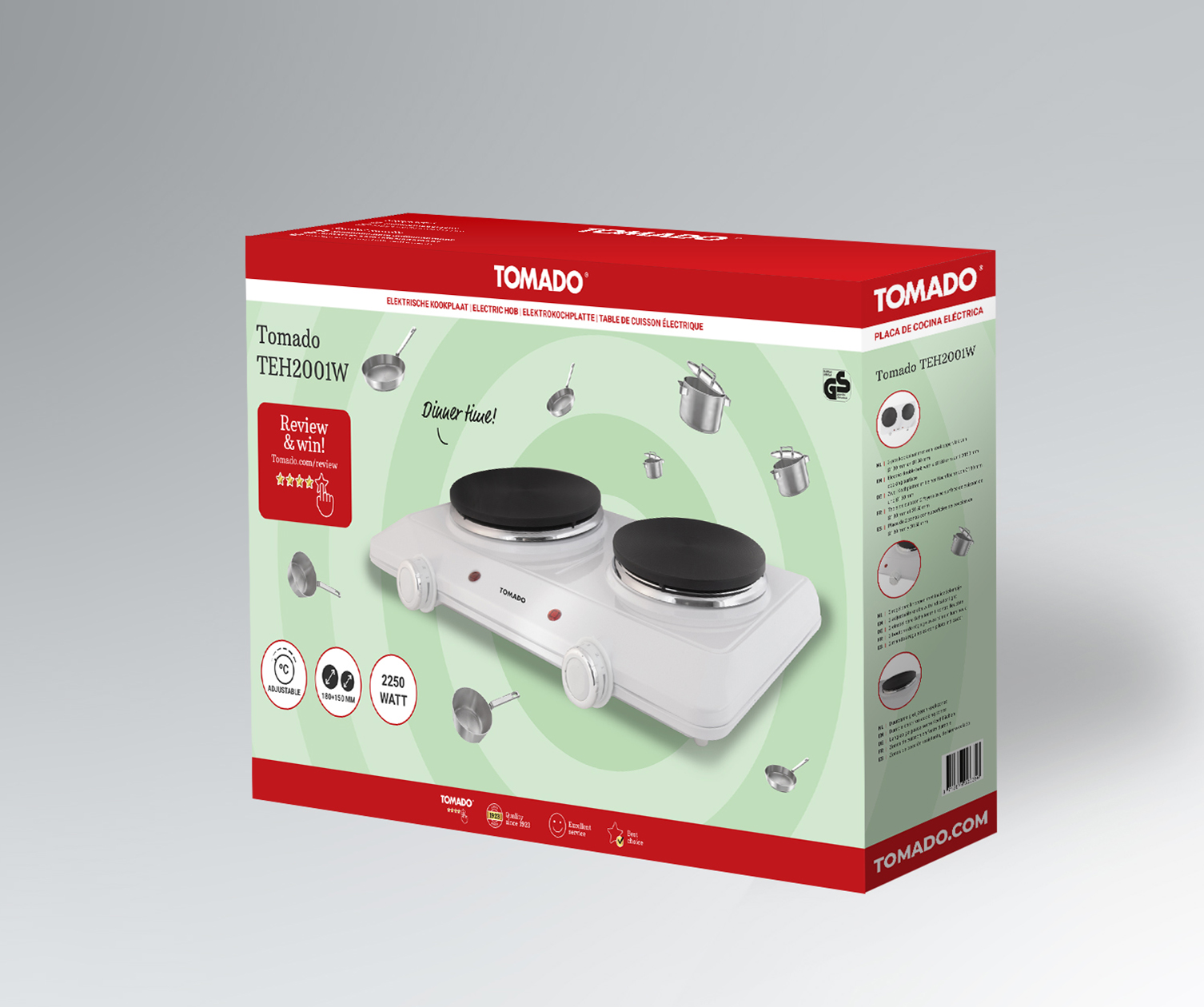 Bestel de elektrische kookplaat hier: https://www.tomado.com/teh2001w/