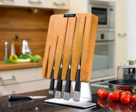 • Magnetisch messenblok in bamboe, schuin model (voor 5 messen): 69,50 euro