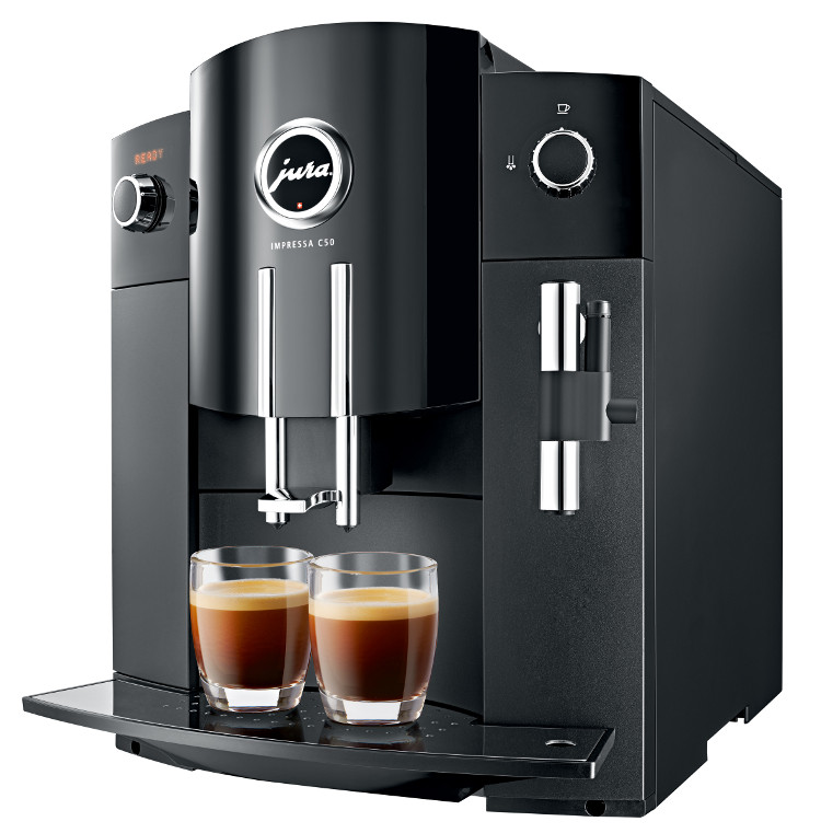 Tegelijk met de IMPRESSA C55 brengt JURA ook de IMPRESSA C50 op de markt. Als opvolger van het zeer succesvolle model de IMPRESSA C5. De IMPRESSA C50 is een eenvoudig te bedienen, elegante, volautomatische koffiemachine. Met eveneens een in hoogte verstelbare koffie-uitloop, een Easy Cappuccinatore die onweerstaanbaar melkschuim met fijne poriën levert, een Rotary Switch en een duidelijke tekstdisplay met 11 talen.